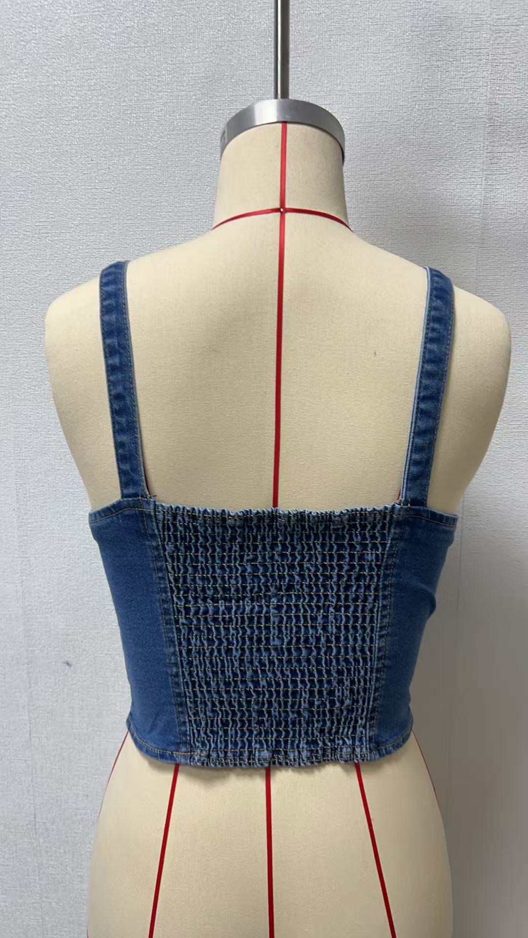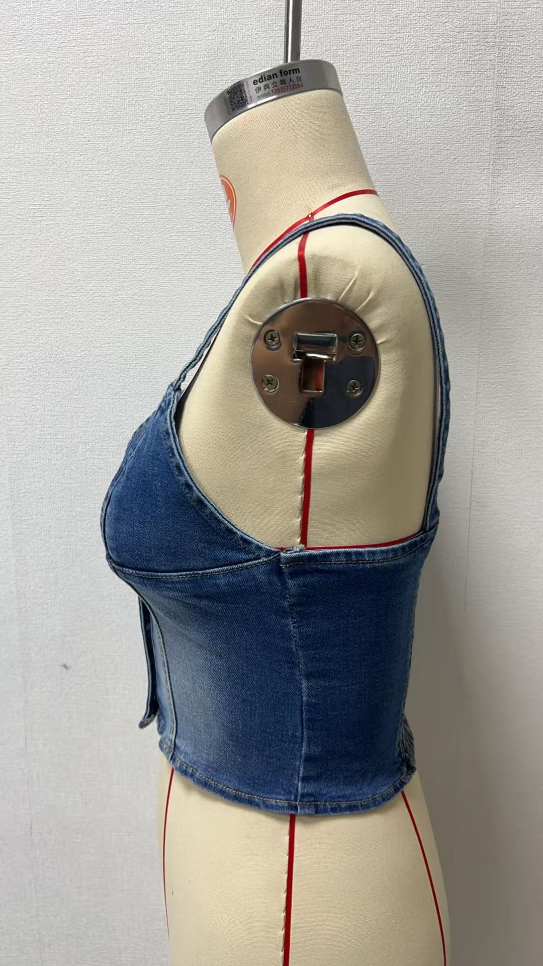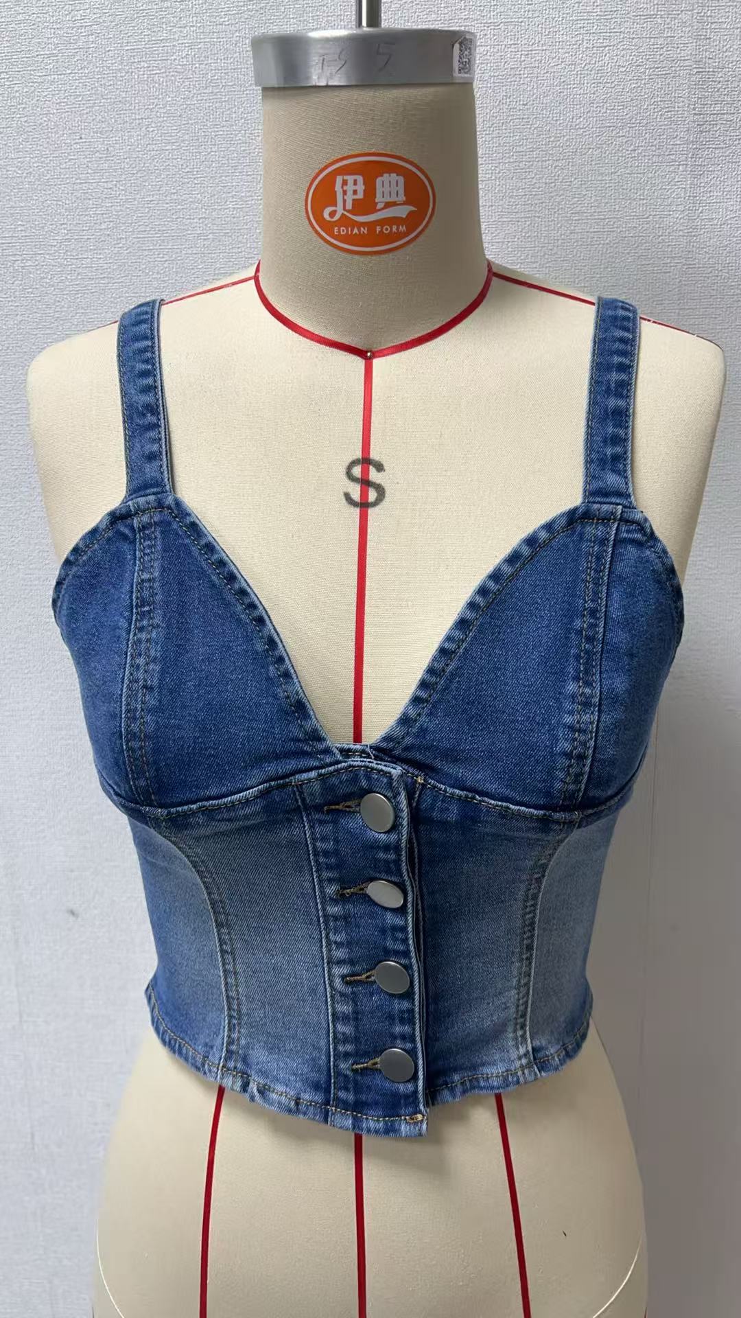공장 직접 판매 2025 장기 현물 유럽과 미국 대외 무역 국경 간 공급 패션 캐주얼 스트레치 데님 조끼 여성