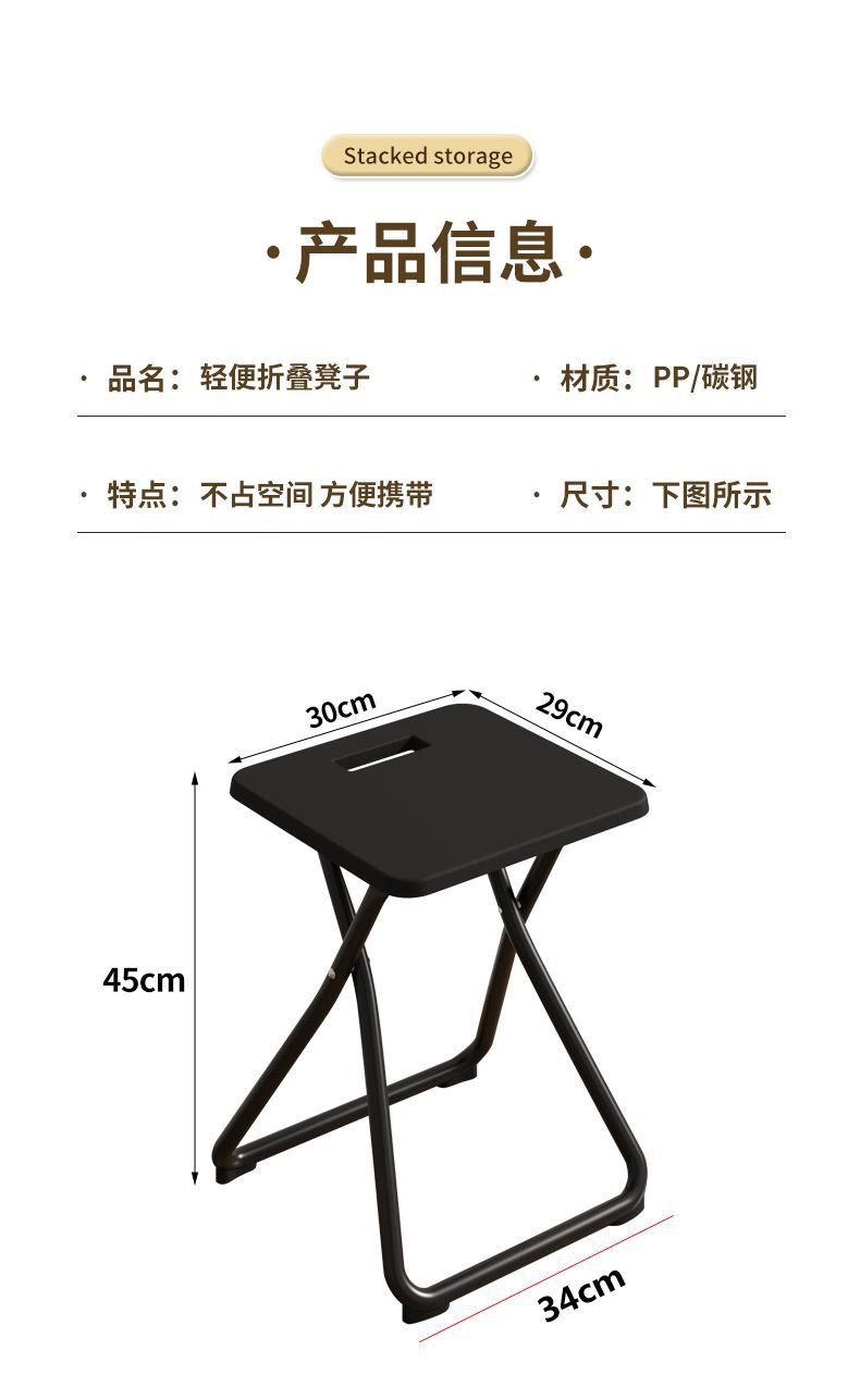 접이식 의자 사각형 의자 장소 레스토랑 휴대용 간편한 보관 기숙사 임대 주택 홈 간단한 야외 스톨 의자스토어 가기