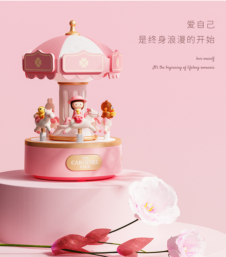 국경 간 새로운 창조적 인 회전 목마 뮤직 박스 뮤직 박스 블루투스 오디오 야간 조명 고급 분위기 조명