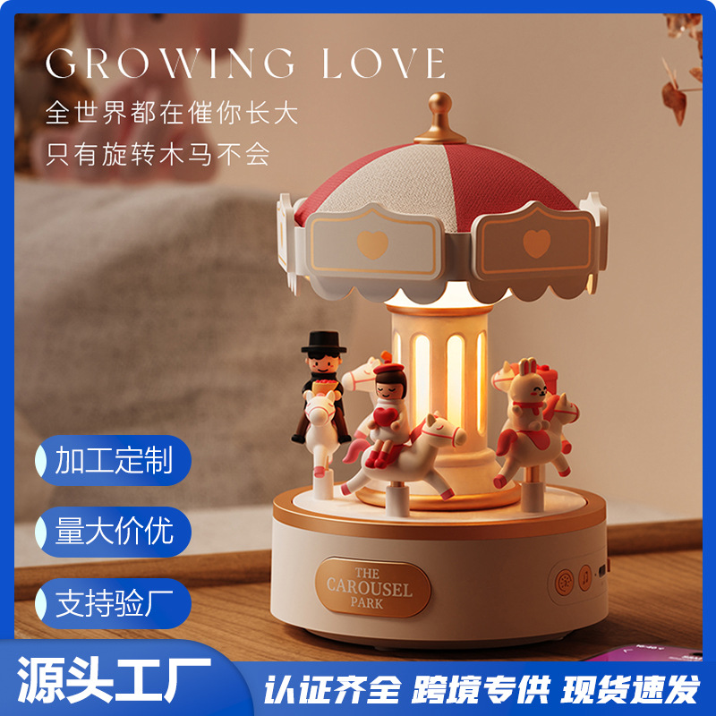 크로스보더 신제품 창의적인 회전목마 테이블 램프 뮤직 박스 블루투스 스피커 무드등 프로젝션스토어 가기