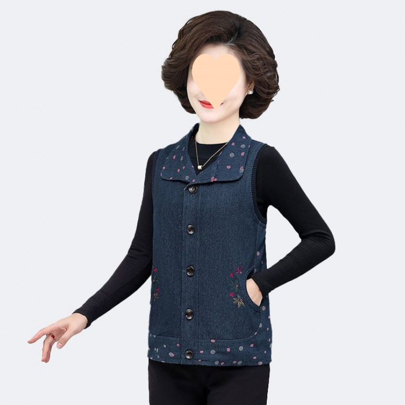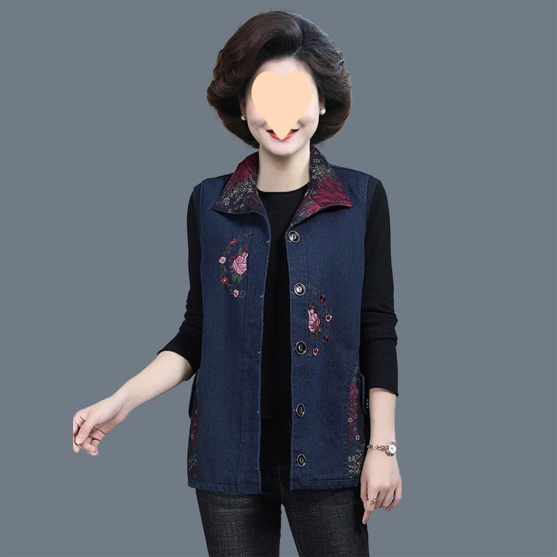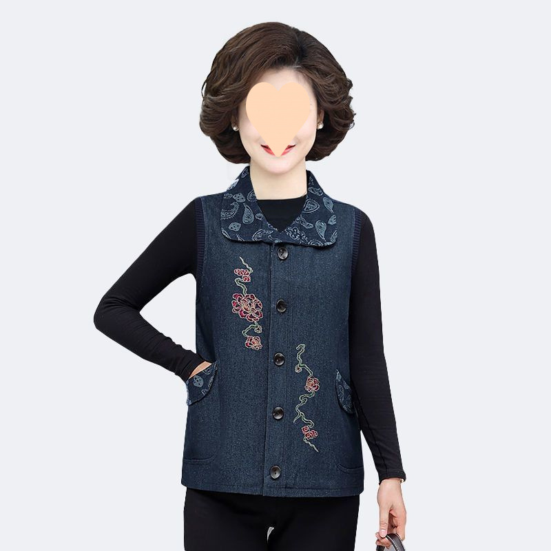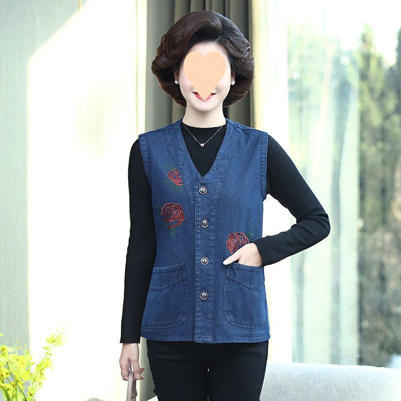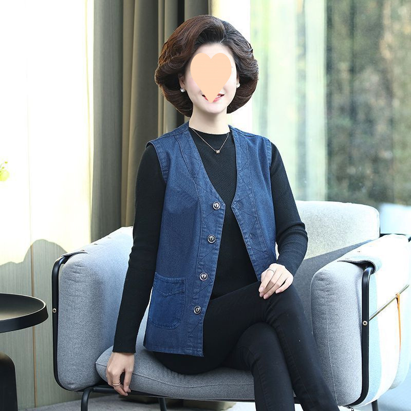 중년 및 노년층 엄마를 위한 봄, 가을 데님 조끼, 여성용 고급 조끼, 여성용 루즈하고 패셔너블하며 다재다능한 조끼