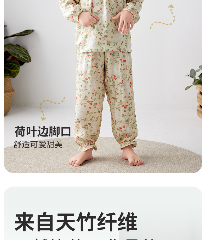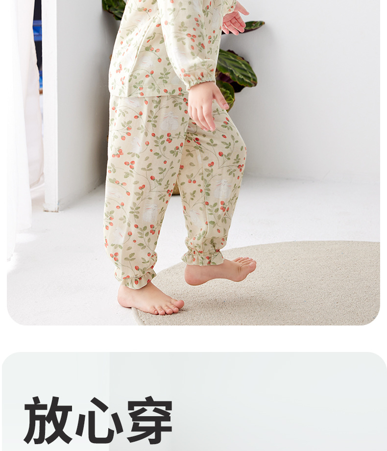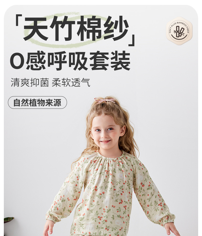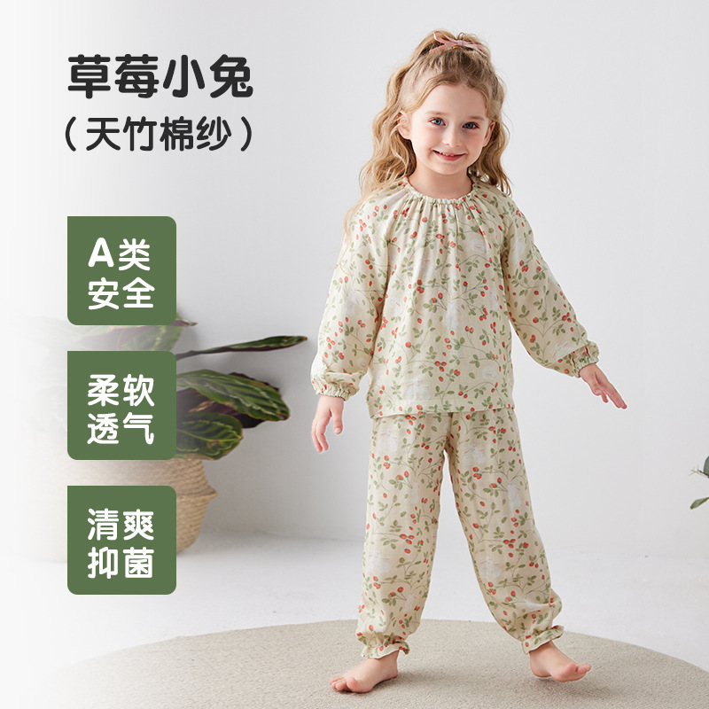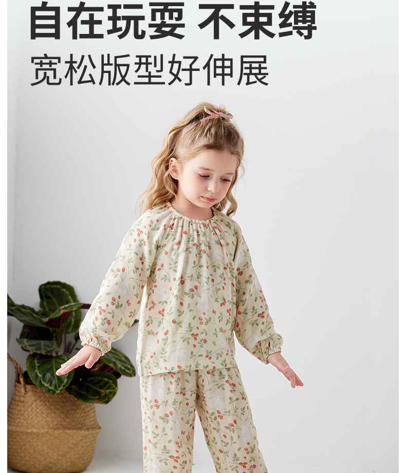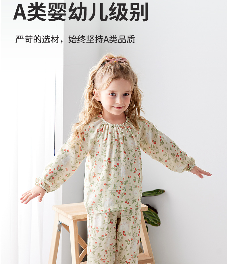 Shangbaomai 봄과 여름 어린이 잠옷 얇은 Tianzhu 섬유 면사 소녀 홈웨어 세트 귀여운 꽃 통기성스토어 가기