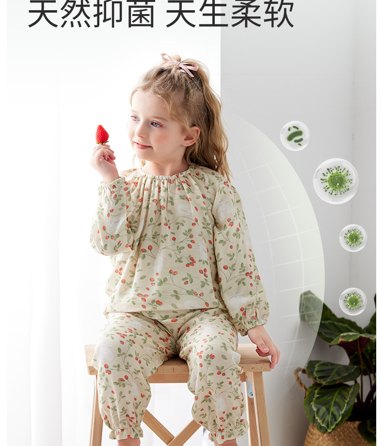 Shangbaomai 봄과 여름 어린이 잠옷 얇은 Tianzhu 섬유 면사 소녀 홈웨어 세트 귀여운 꽃 통기성