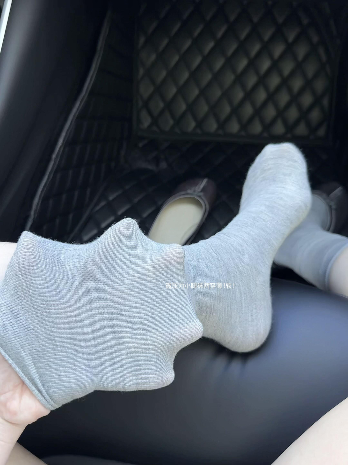 봄 여름 한국식 올인원 종아리 양말, 플랫본, 통기성 면양말, 단색 여성용 양말, 흰색 긴 양말, 얇은 양말