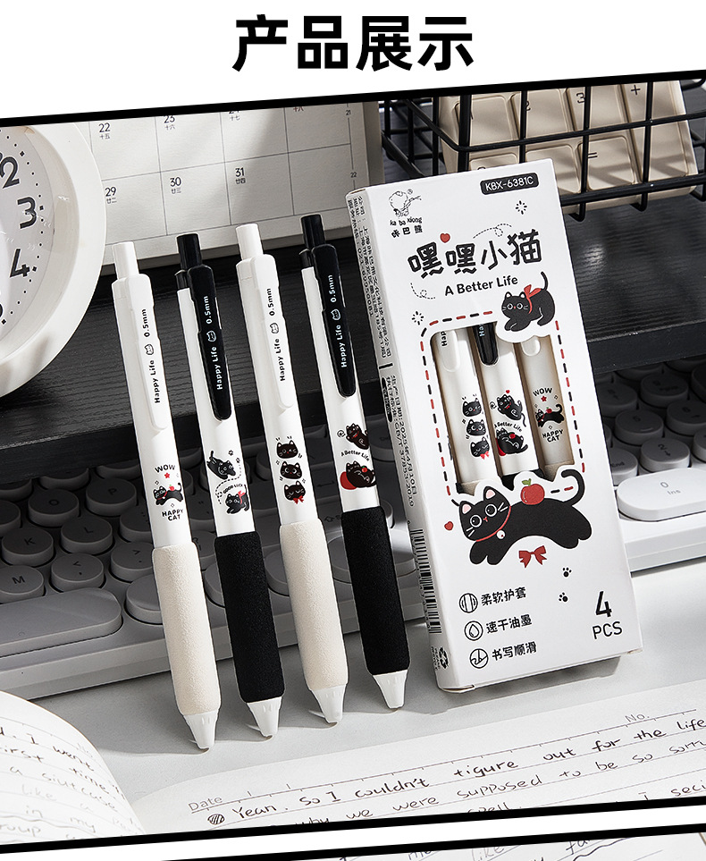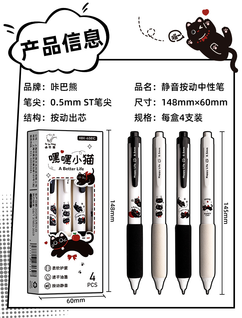 카바베어 클릭 무소음 젤펜 학생 수험 문제 특수 속건성 부드럽고 연속 잉크 ST 펜촉 검정색 펜