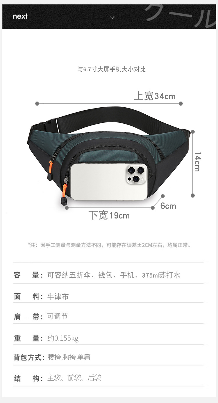 국경 간 허리 가방 새로운 야외 스포츠 등산 남자 가슴 가방 캔버스 휴대 전화 가방 건설 현장 작업 출납원 크로스 바디 백