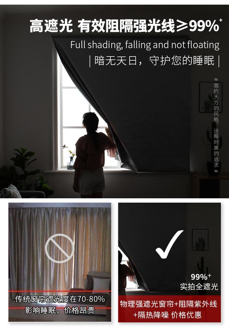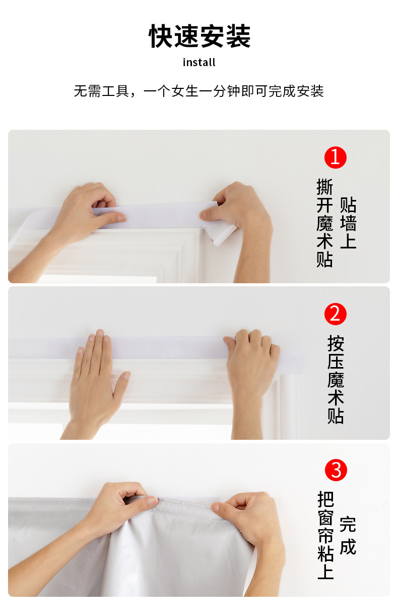 구멍 없는 커튼, 자외선 차단, 단열 및 차양, 벨크로, 차광 천, 공장 기숙사 침실 플로팅 커튼, 가정용스토어 가기