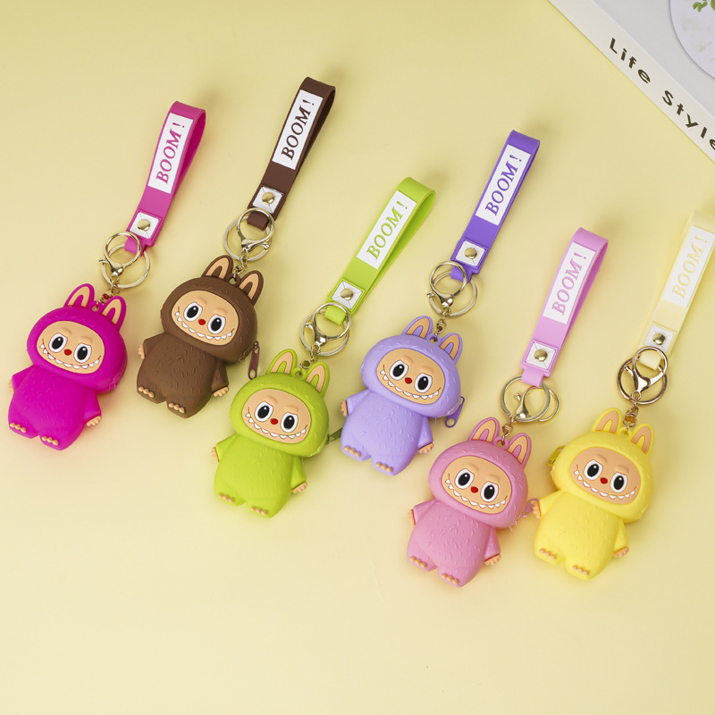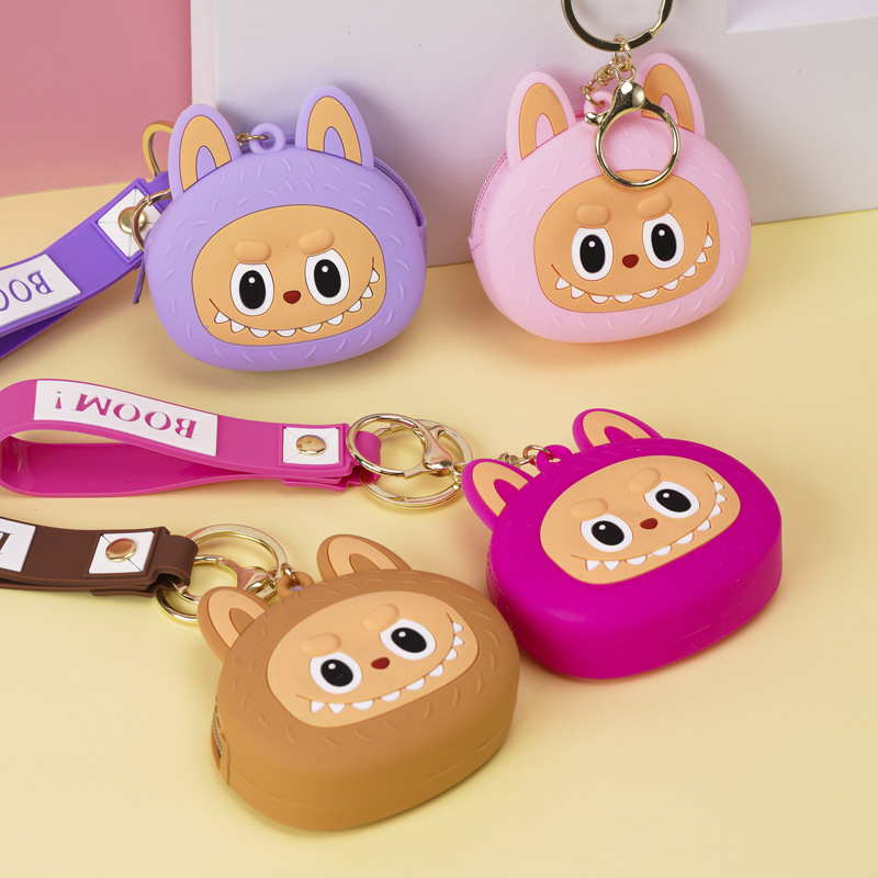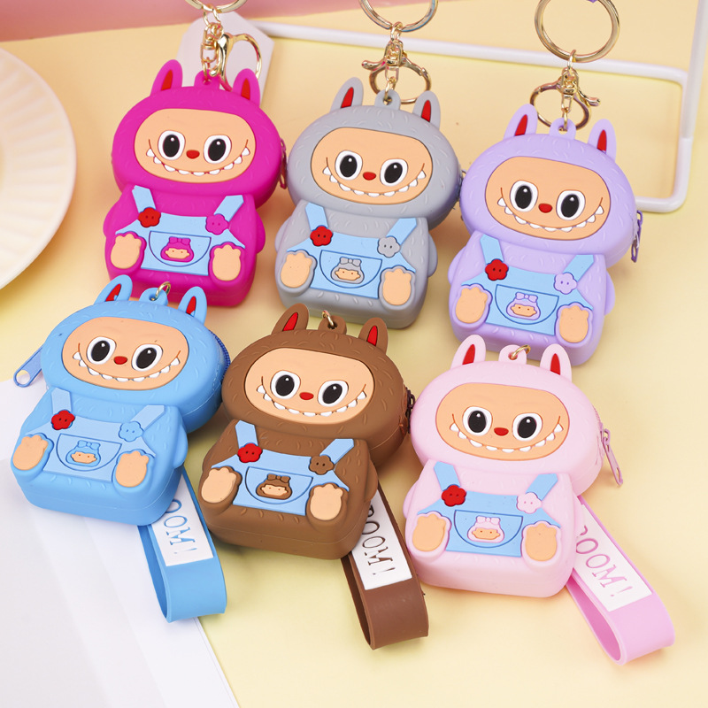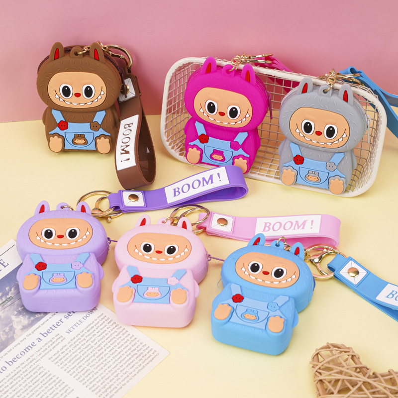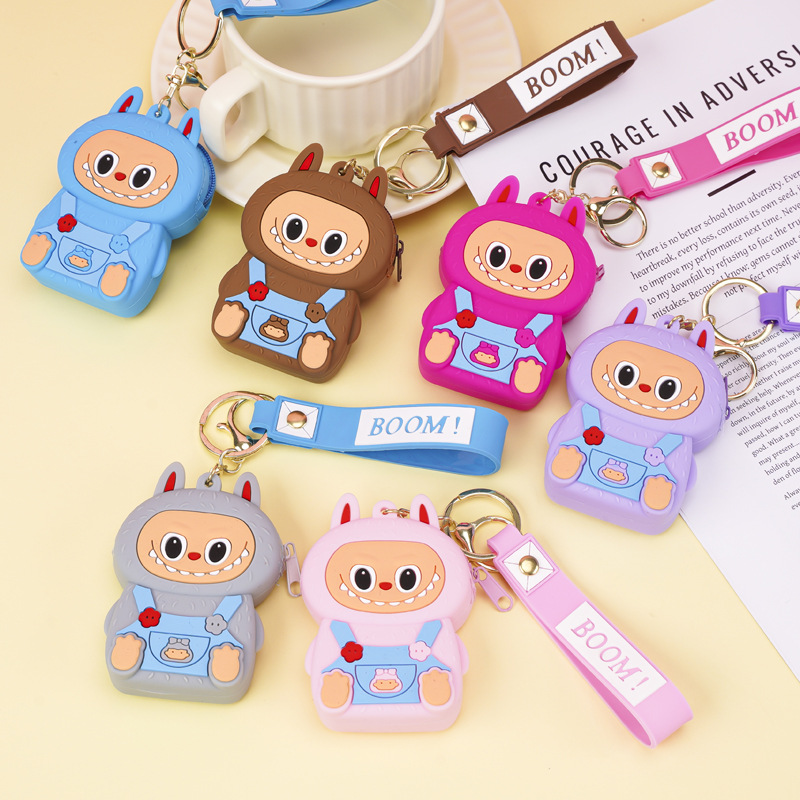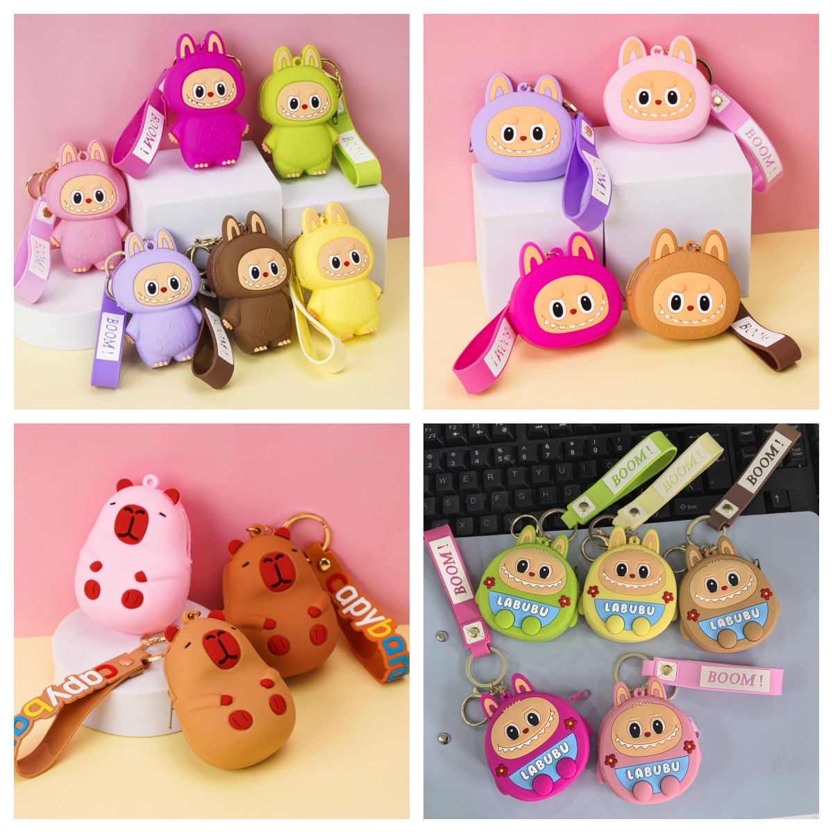 키 체인 펜던트 만화 라부부 어린이 지갑 Capybara 인형 헤드폰 가방 Labubu 실리콘 동전 지갑