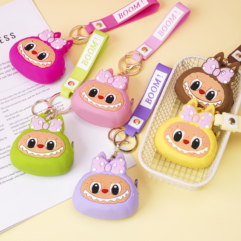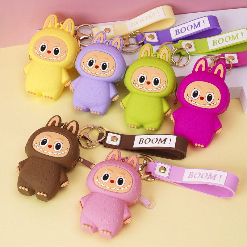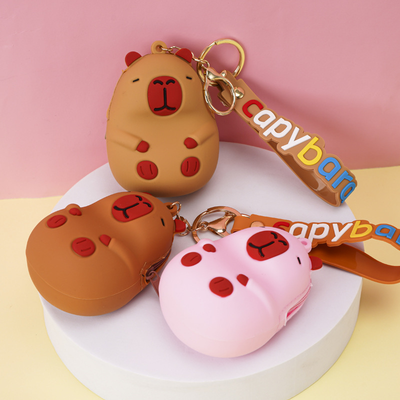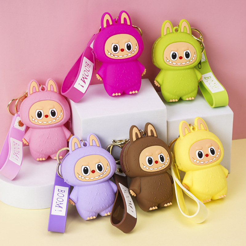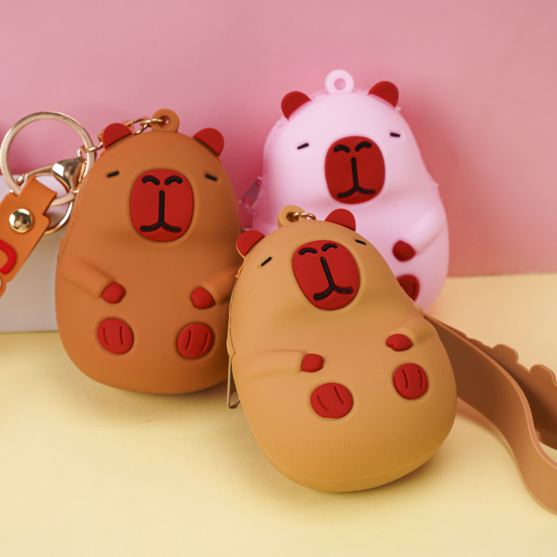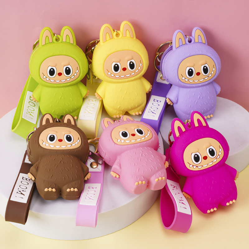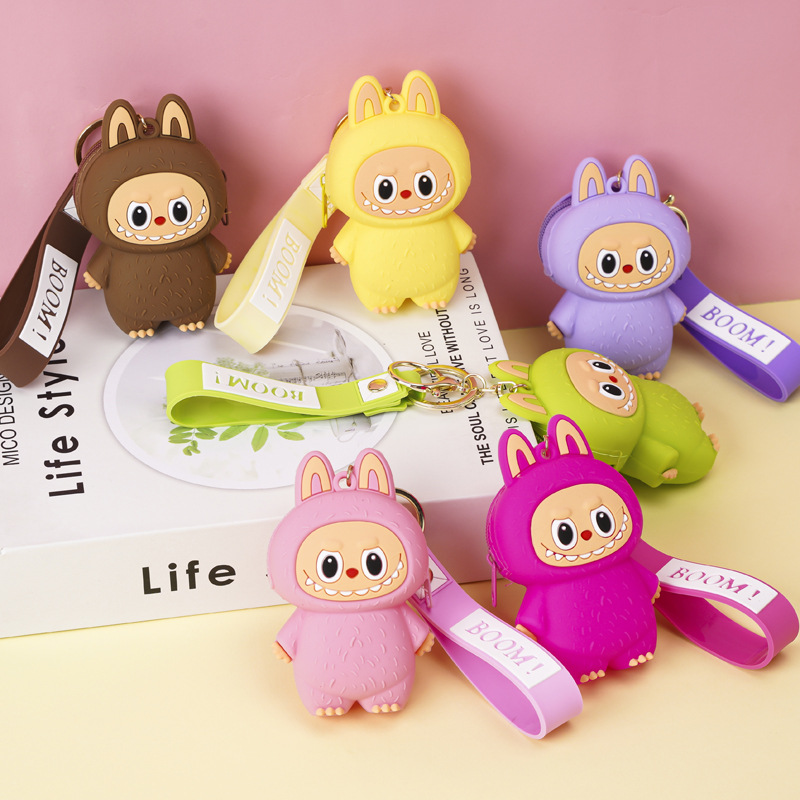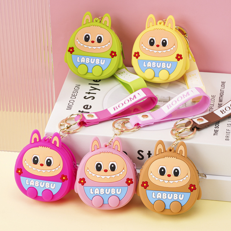 키 체인 펜던트 만화 라부부 어린이 지갑 Capybara 인형 헤드폰 가방 Labubu 실리콘 동전 지갑