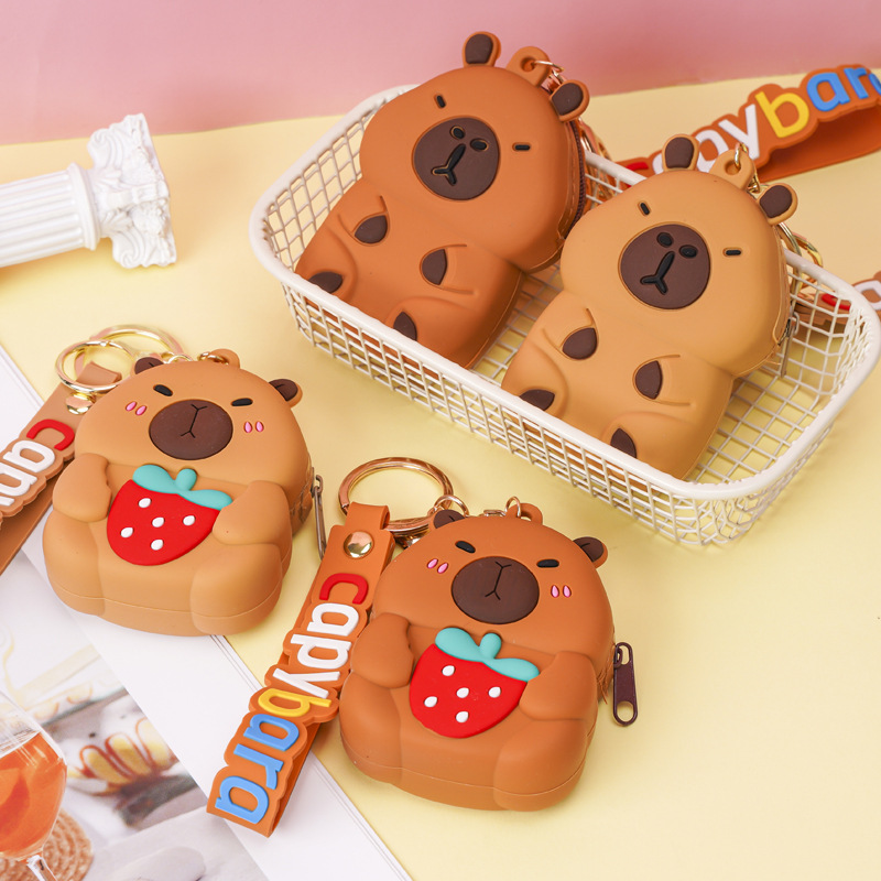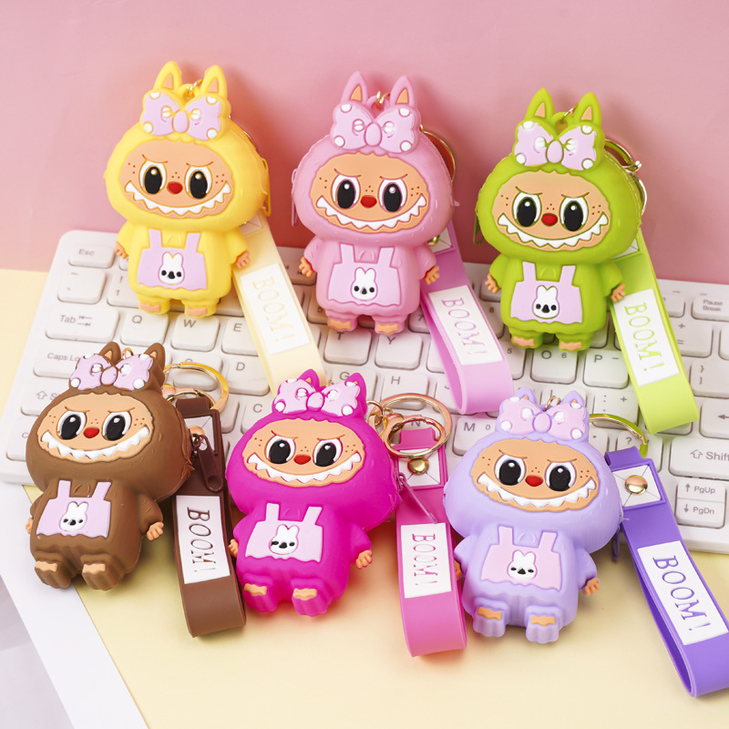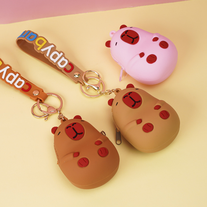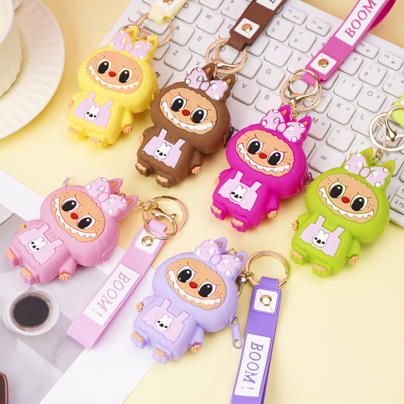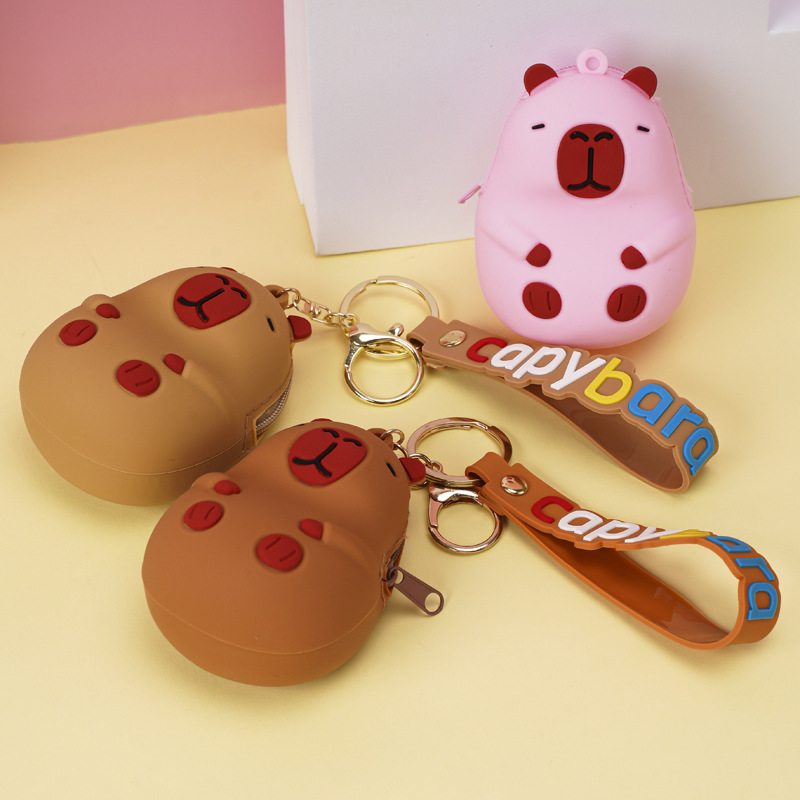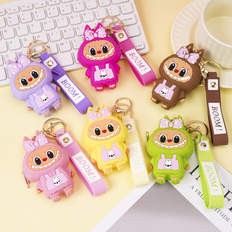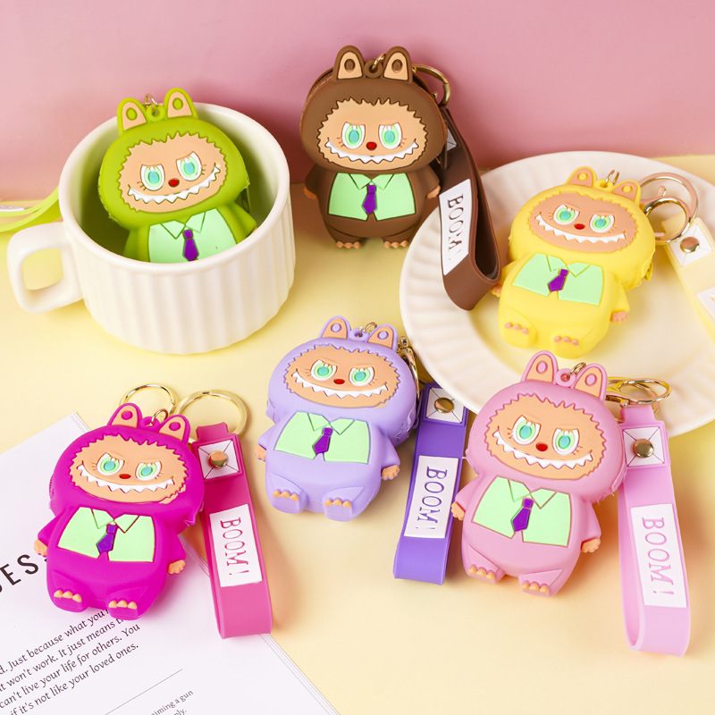 키 체인 펜던트 만화 라부부 어린이 지갑 Capybara 인형 헤드폰 가방 Labubu 실리콘 동전 지갑
