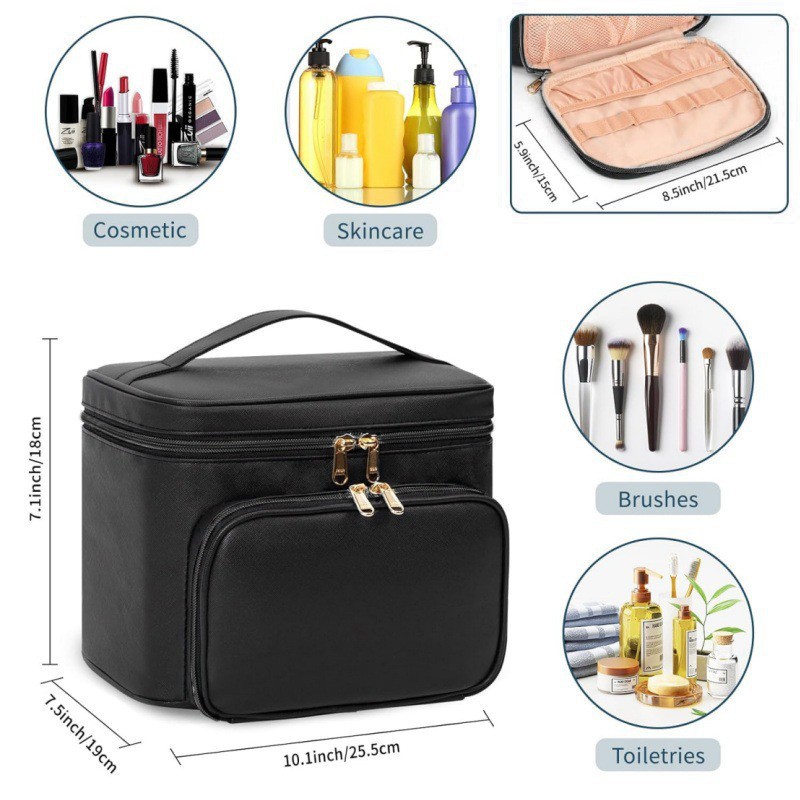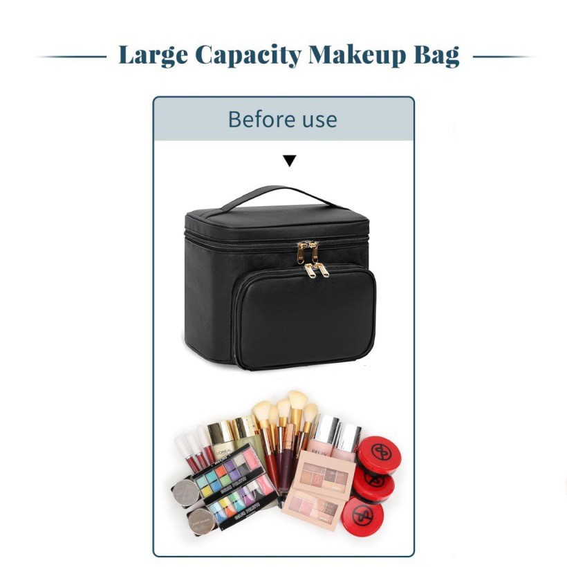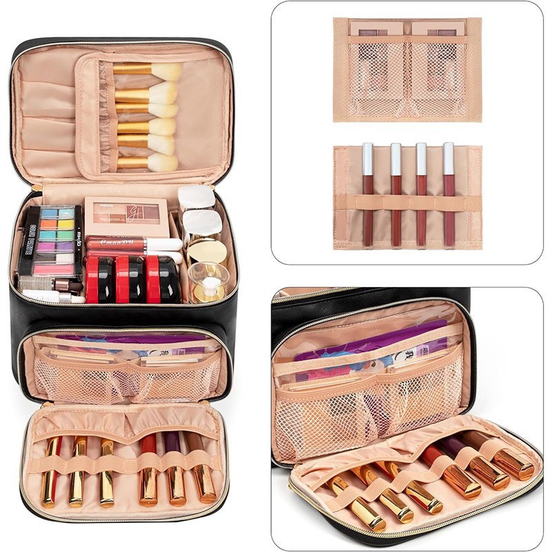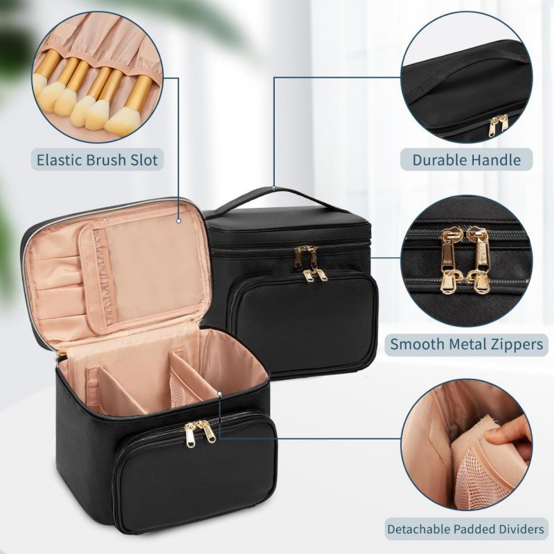 즉시 배송 가능한 휴대용 여행용 화장품 가방, 메이크업 브러쉬 포함, 여러 칸막이, 세련된 손잡이, 디바이더, 고급스러운 디자인의 화장품 가방스토어 가기