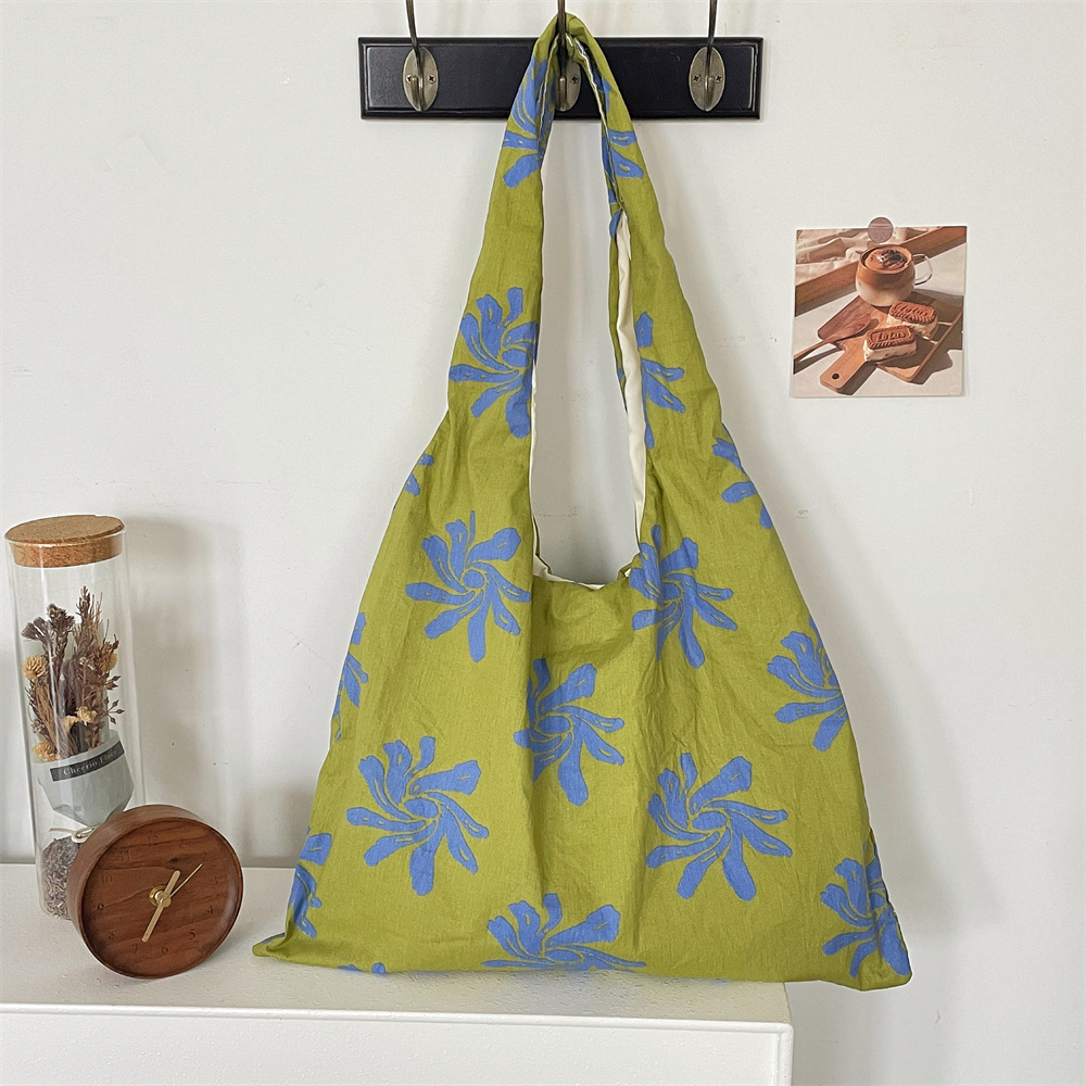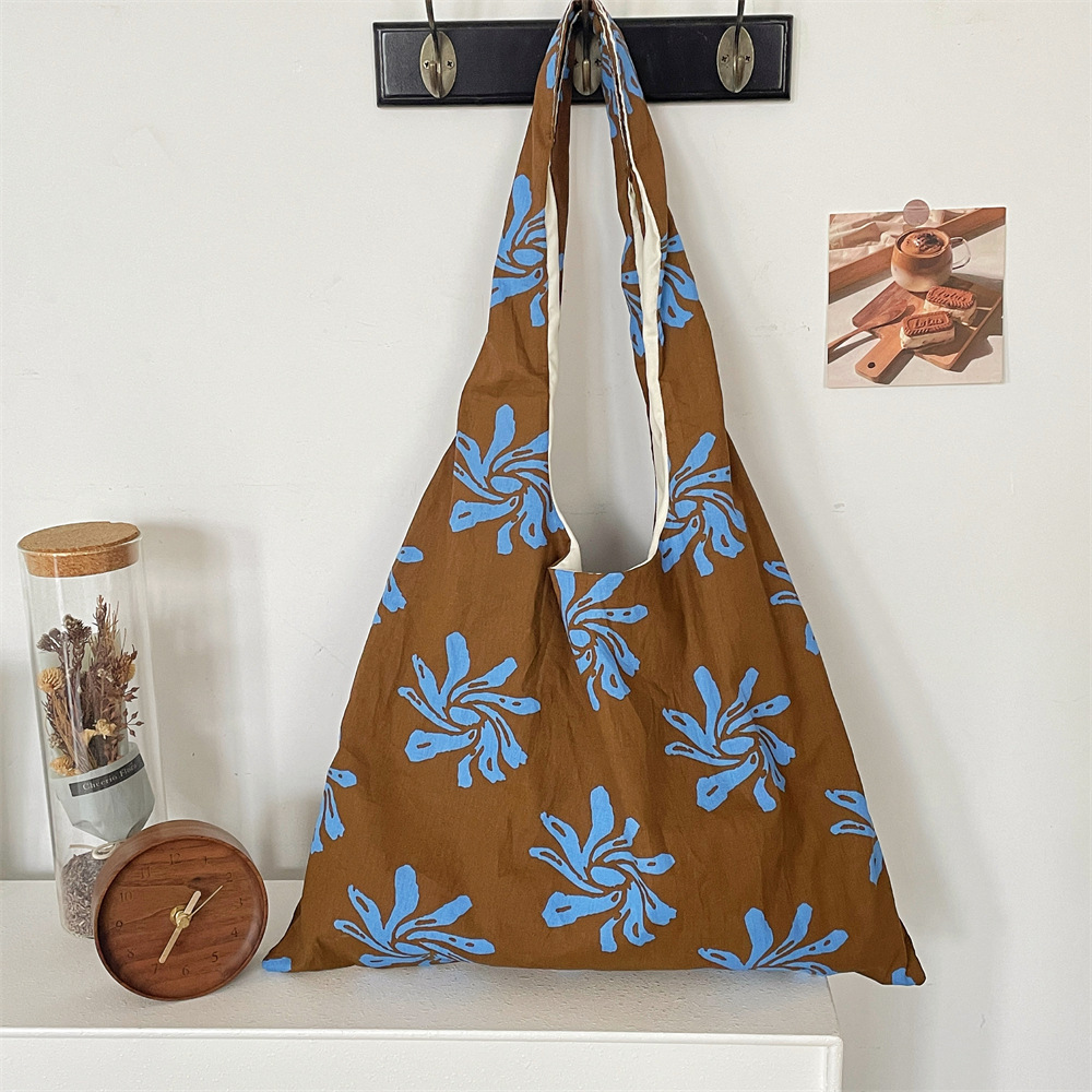 56131 2025 새로운 스타일 문학 작은 파란색 꽃 캔버스 조끼 여성 게으른 스타일 통근 대용량 어깨 핸드백