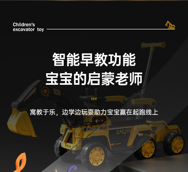 어린이 굴삭기 장난감 자동차는 앉을 수 있습니다. 소녀와 소년을 위한 장난감 원격 제어 전기 굴삭기는 엔지니어링 차량을 탈 수 있습니다.스토어 가기
