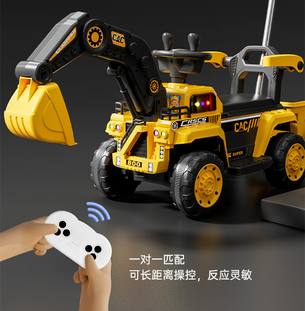 어린이 굴삭기 장난감 자동차는 앉을 수 있습니다. 소녀와 소년을 위한 장난감 원격 제어 전기 굴삭기는 엔지니어링 차량을 탈 수 있습니다.
