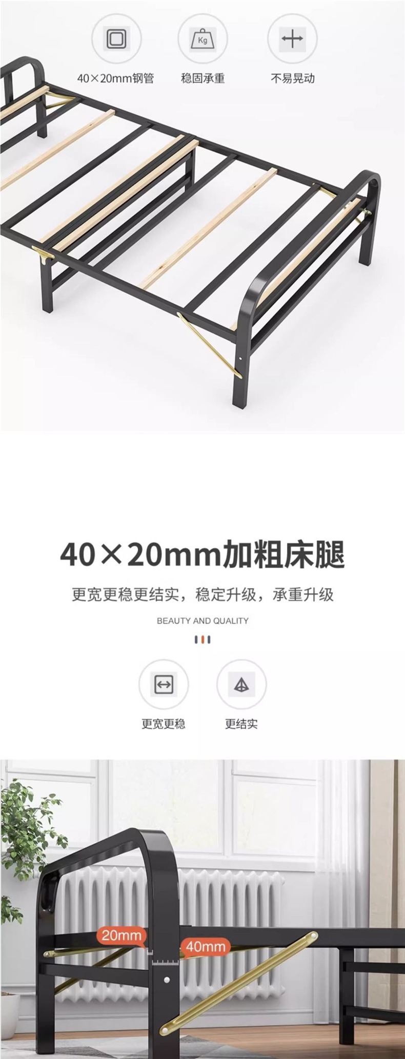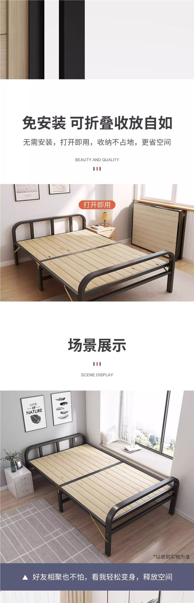 접이식 침대 원목 싱글 홈 오피스 점심 시간 유물 임대 철제 프레임 침대 동반 침대 더블 소형 침대