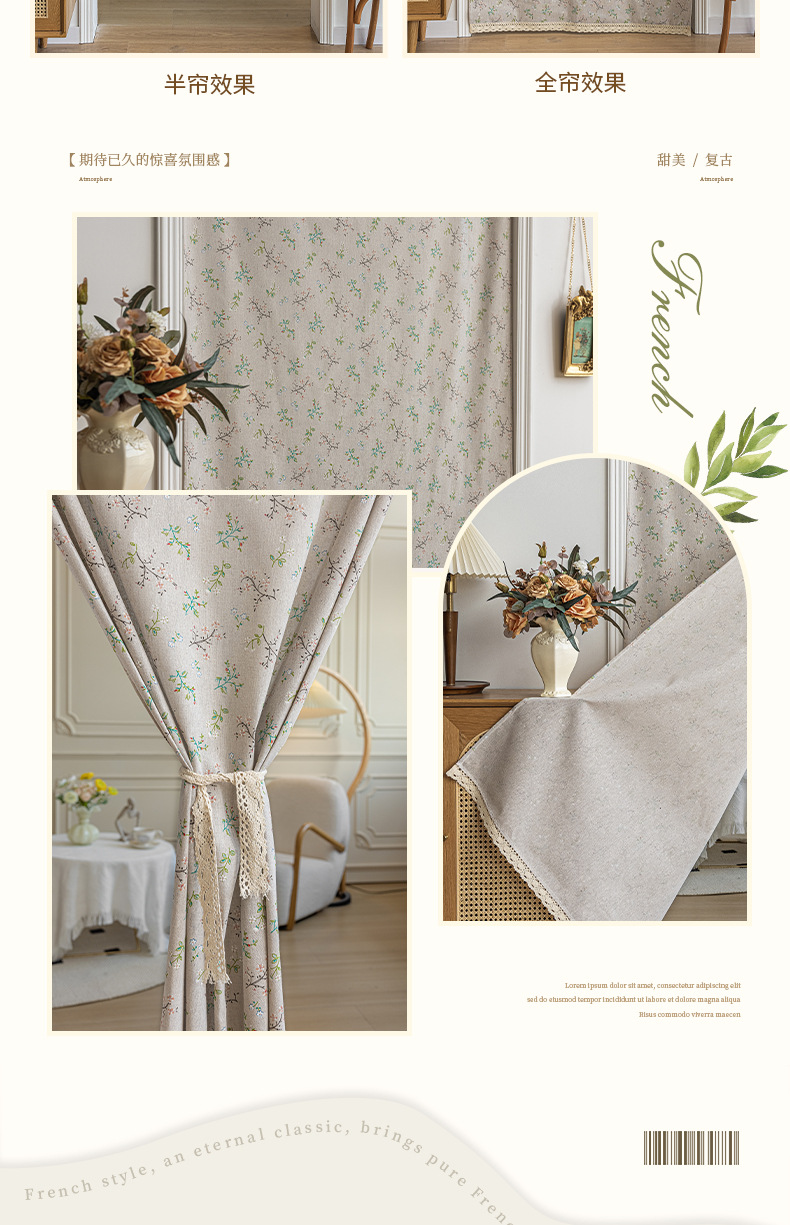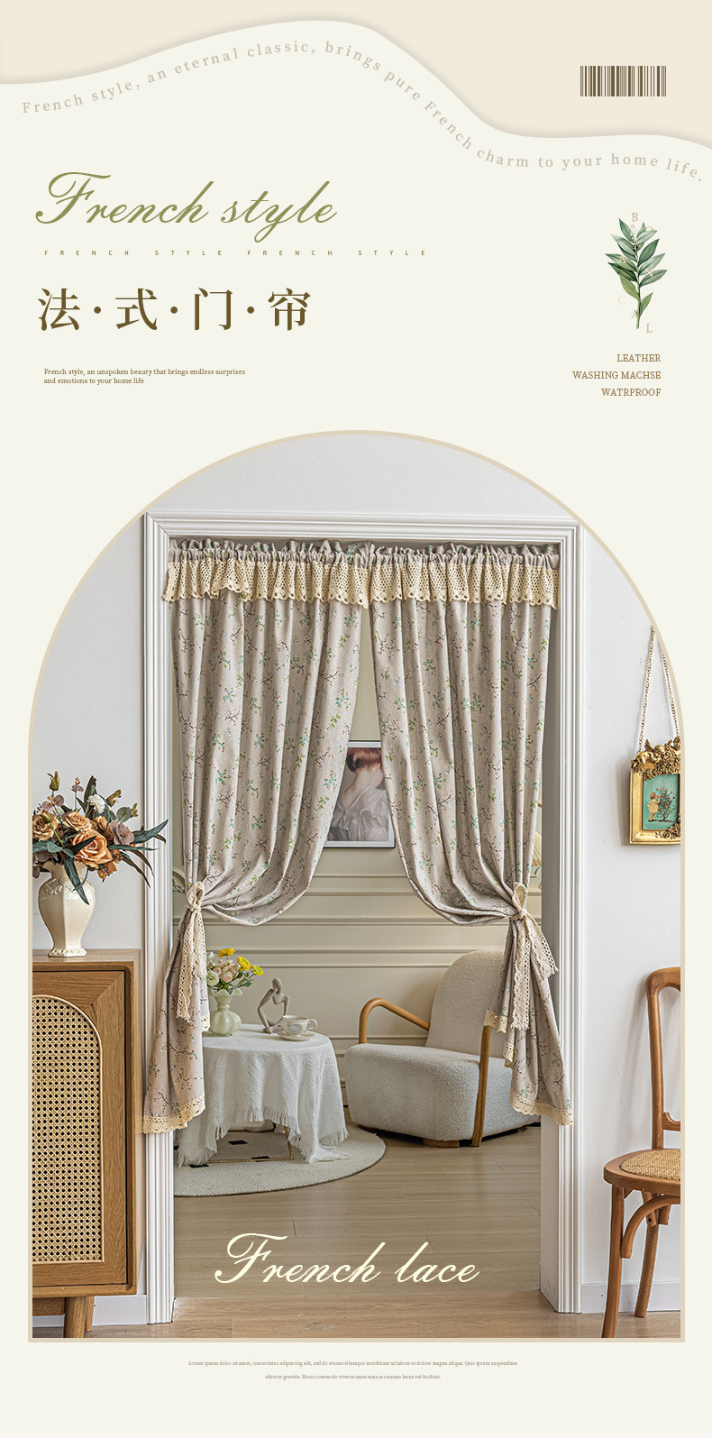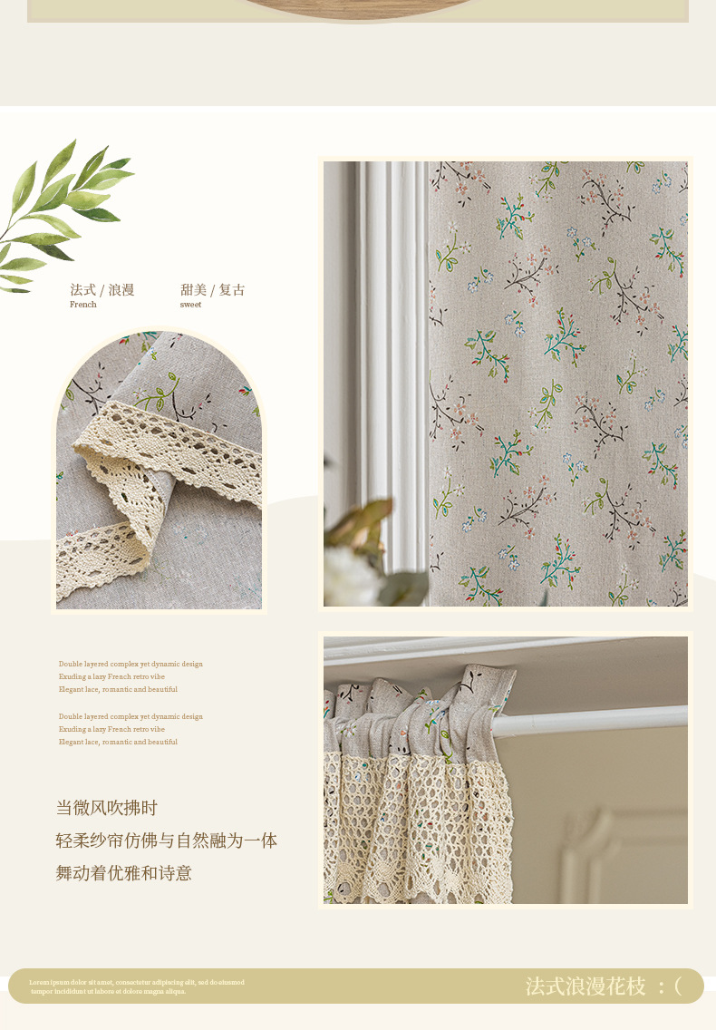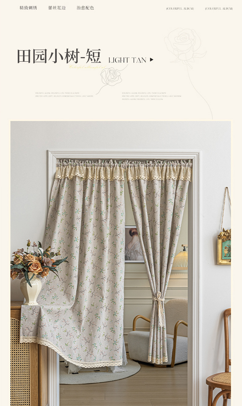 반창문 커튼, 면, 린넨, 아메리칸 목가적 무펀치 도어 커튼, 패브릭 침실 프라이버시 커튼, 주방스토어 가기