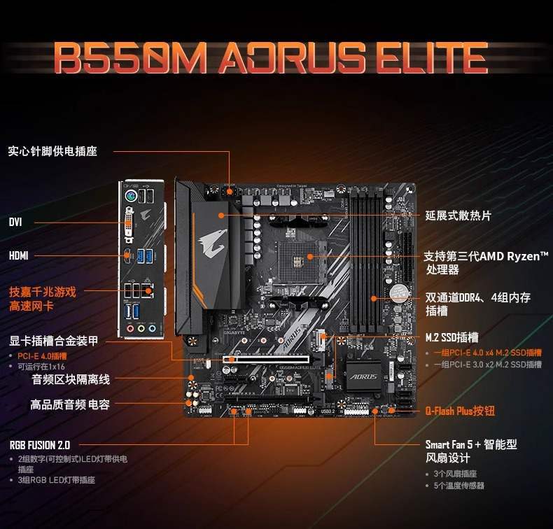 CPU 5600G에 적합한 Gigabyte Xiaodiao B550M AORUS ELITE AMD 프로세서 마더보드  700G스토어 가기