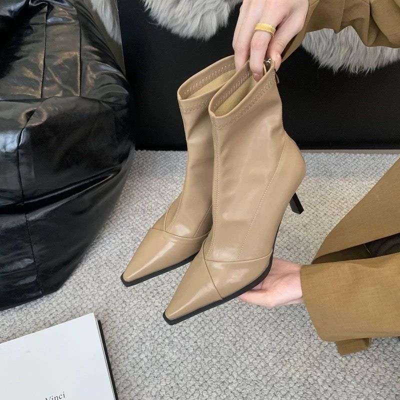 여성용 포인티드 토 숏부츠 2025 가을 겨울 신상 부츠 플러스 벨벳 숏부츠 니치 슬림 여성 부츠 스틸레토 하이힐 부츠