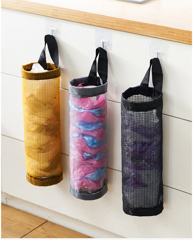 주방 쓰레기 봉투 보관 걸이 가방 벽걸이 형 이동식 편리한 원형 비닐 봉투 수집기 재고 있음