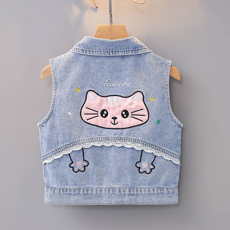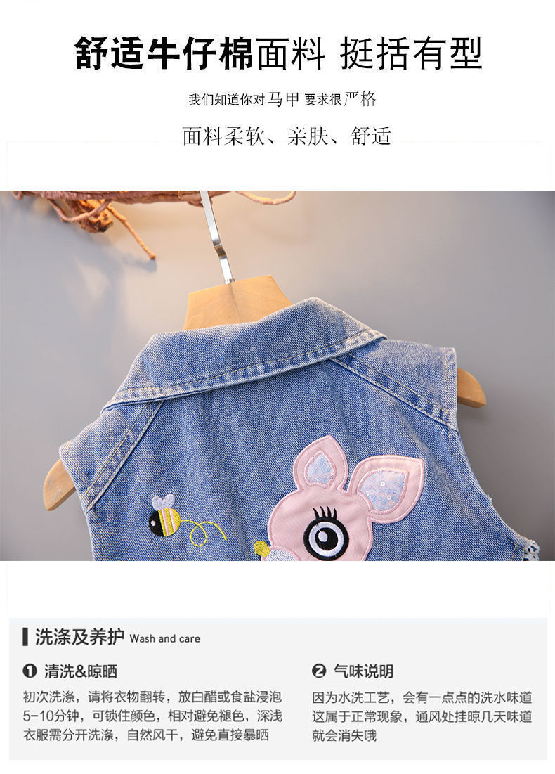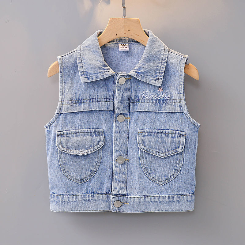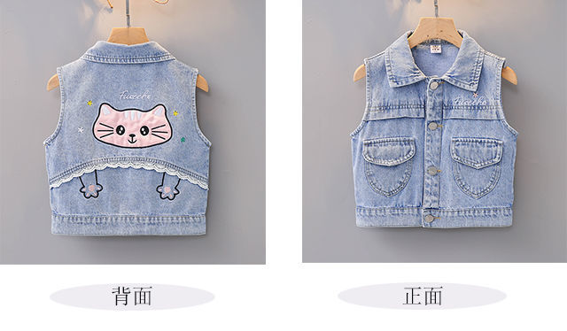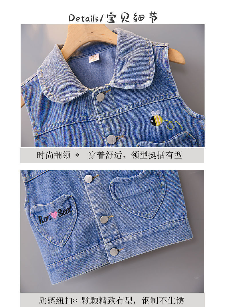 데님 조끼 아동 조끼 봄, 가을 겉옷 2023 새로운 스타일 유행 맞춤형 소녀 민소매 소녀 얇은 스타일스토어 가기