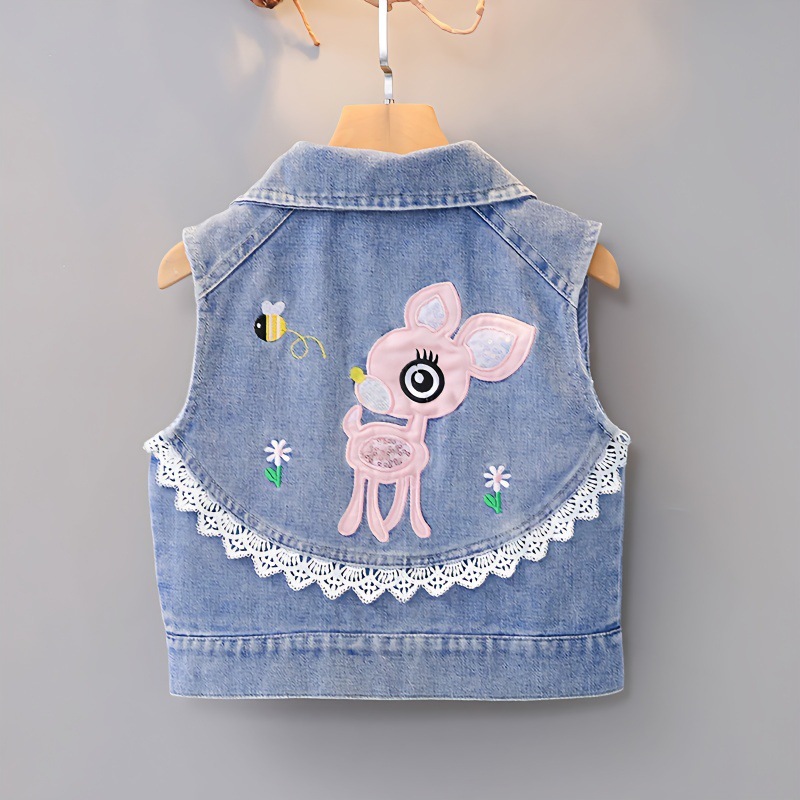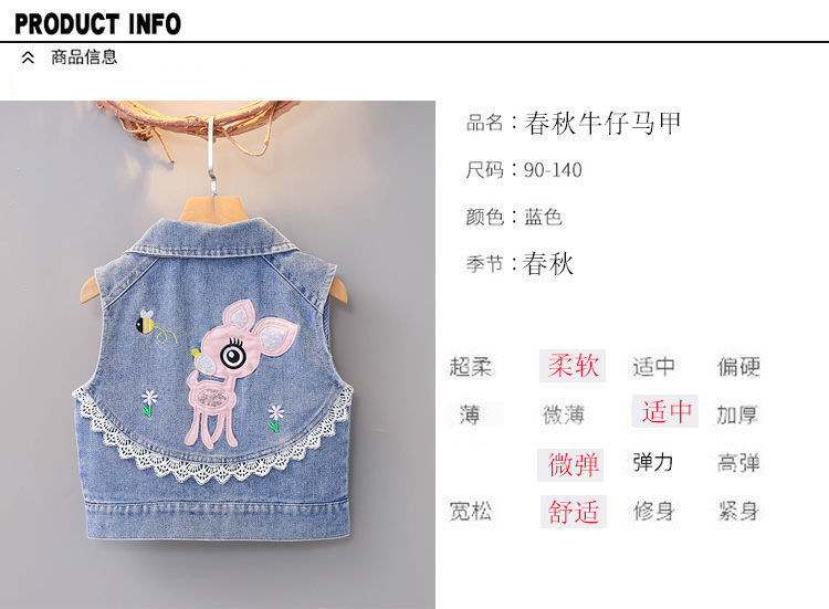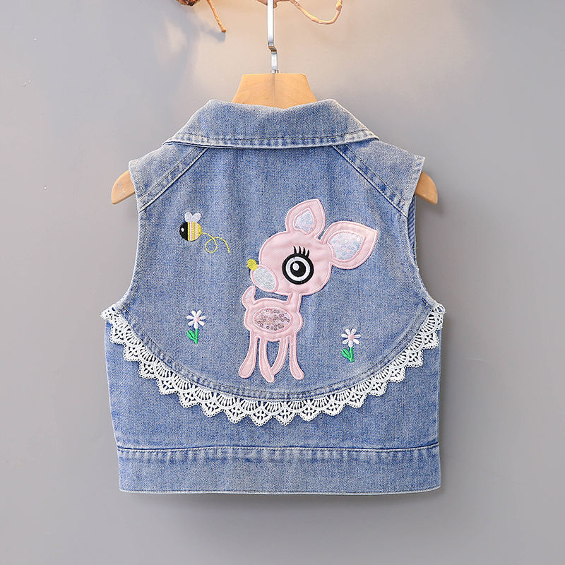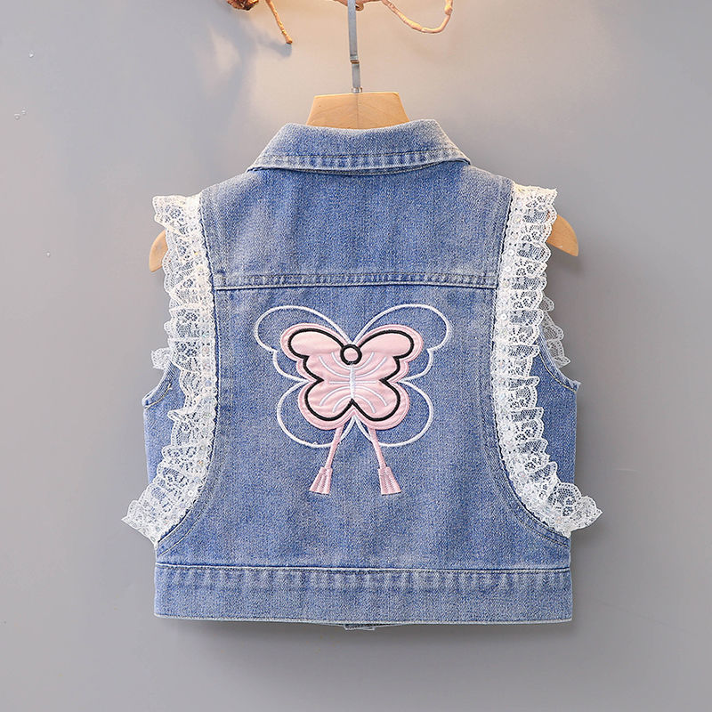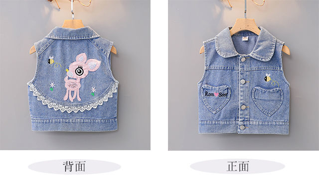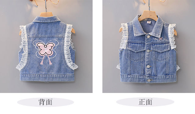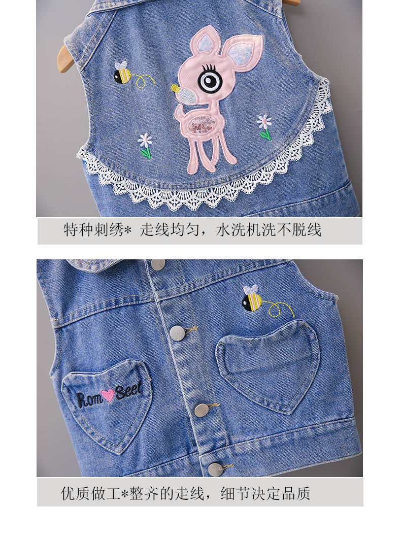 데님 조끼 아동 조끼 봄, 가을 겉옷 2023 새로운 스타일 유행 맞춤형 소녀 민소매 소녀 얇은 스타일스토어 가기