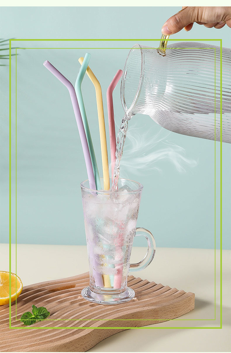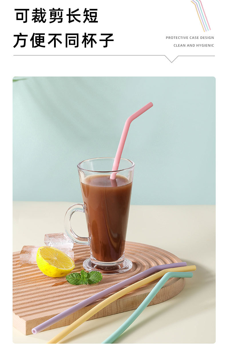 국경 간 식품 등급 실리콘 빨대, 휴대용 및 재사용 가능한 빨대, 고온 내성, 청소 용이, 식기 세척기 사용 가능