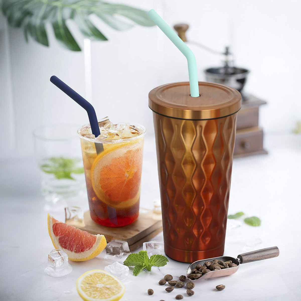 국경 간 식품 등급 실리콘 빨대, 휴대용 및 재사용 가능한 빨대, 고온 내성, 청소 용이, 식기 세척기 사용 가능스토어 가기