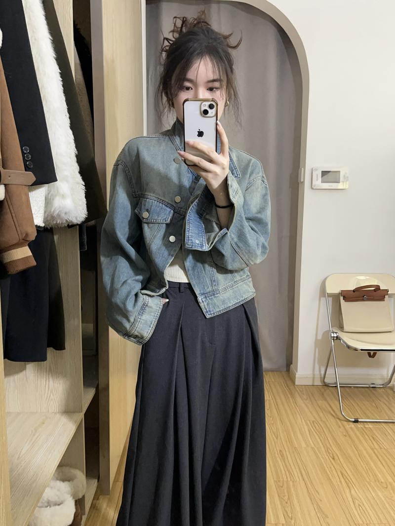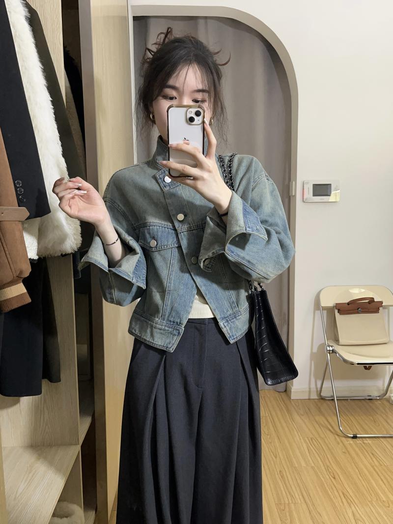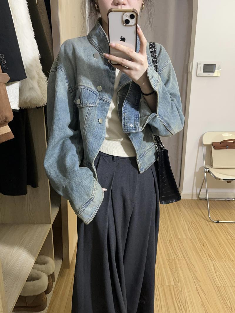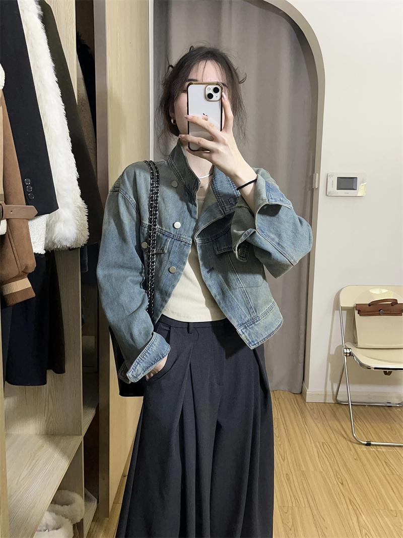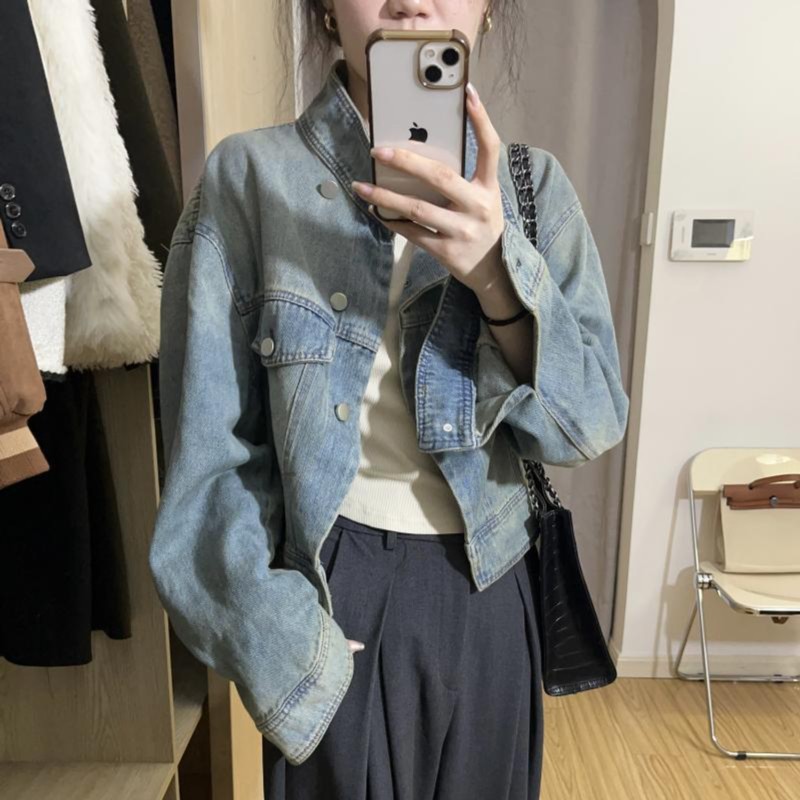 봄, 가을 여성용 짧은 데님 재킷, 활용도가 높은 루즈핏, 작은 디자인, 니치 솔트 스탠드업 칼라 재킷 상의스토어 가기