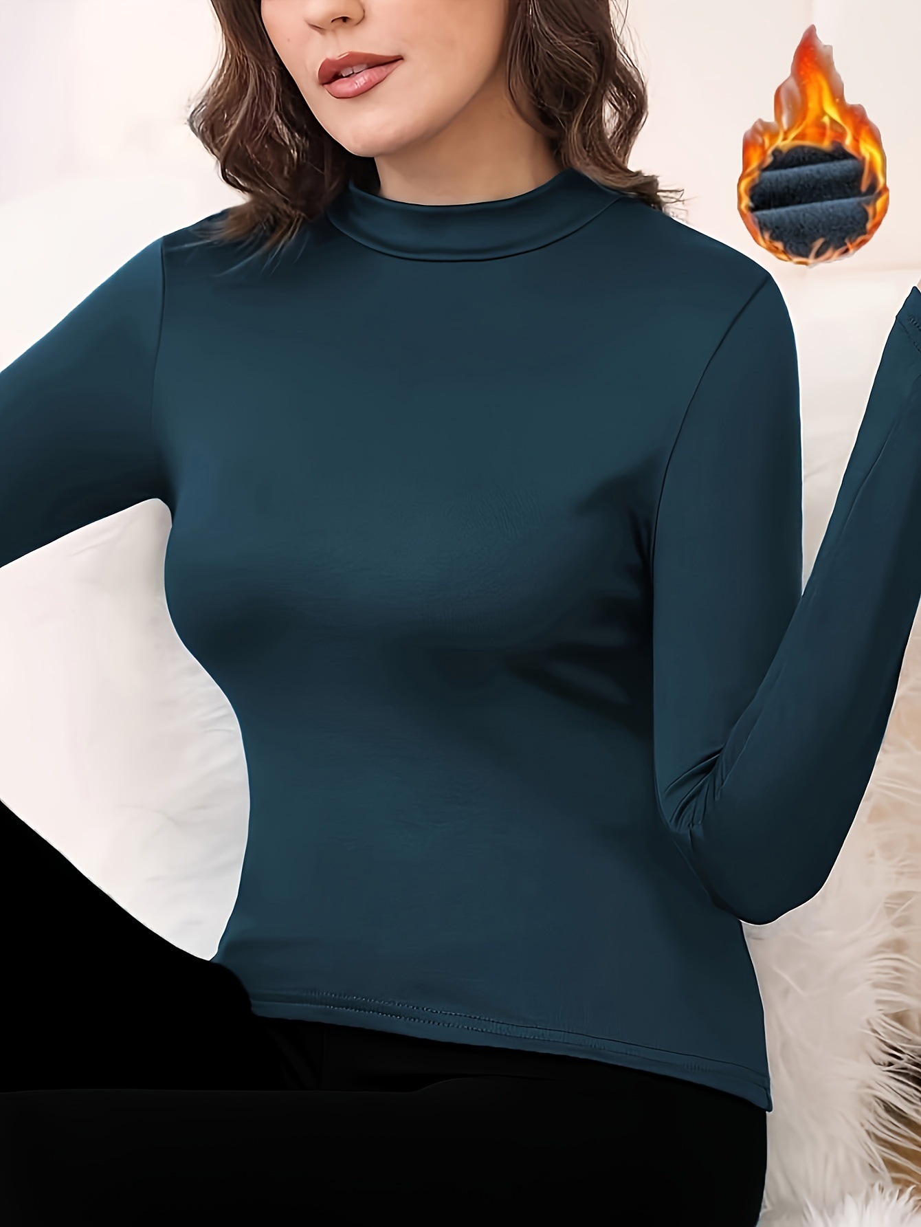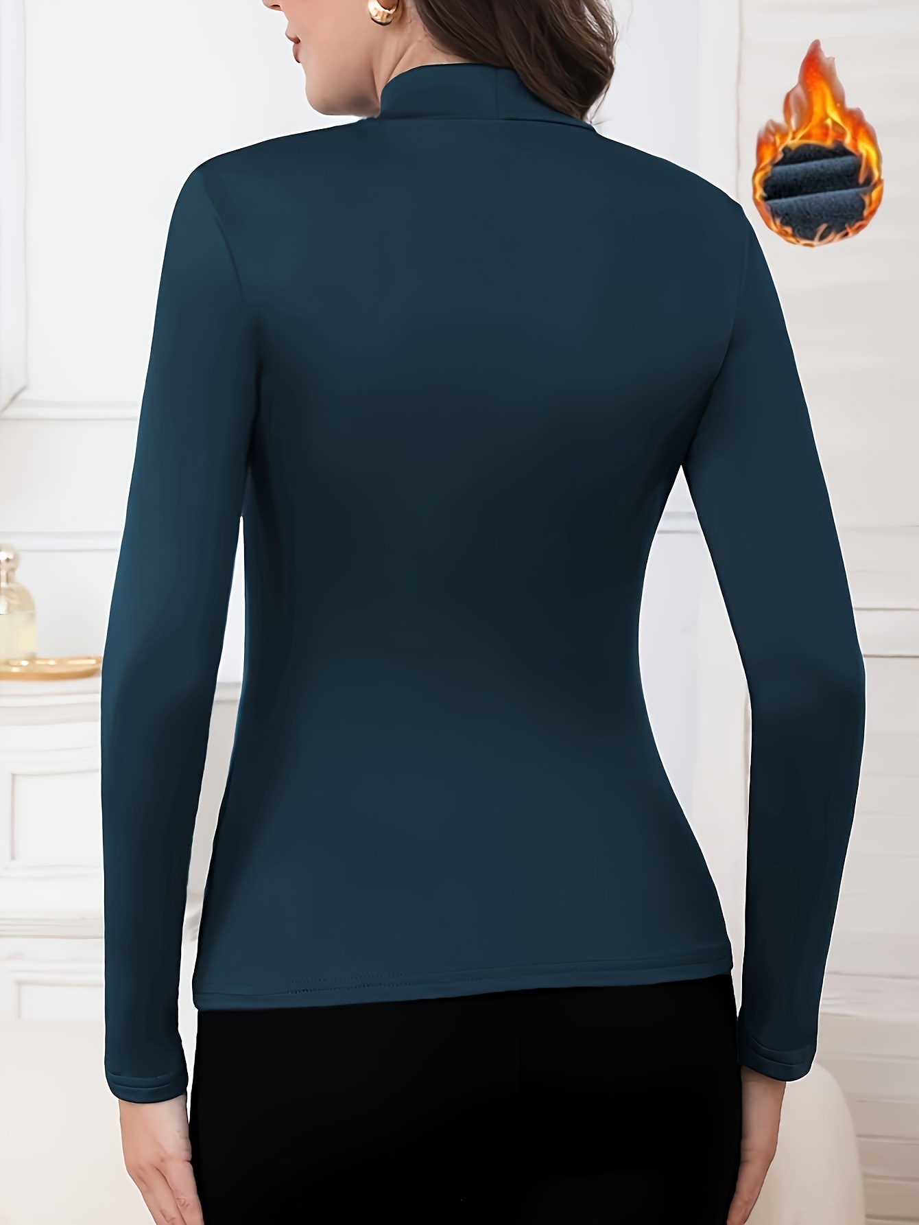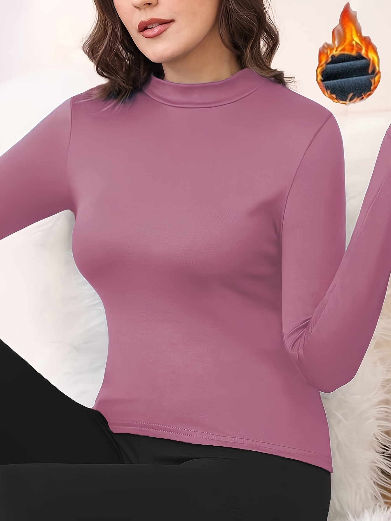 유럽과 미국의 크로스보더 여성용 라운드 넥 긴팔 벨벳 바닥 셔츠 가을 겨울 새로운 스타일의 심플한 솔리드 컬러 슬림핏 따뜻한 탑
