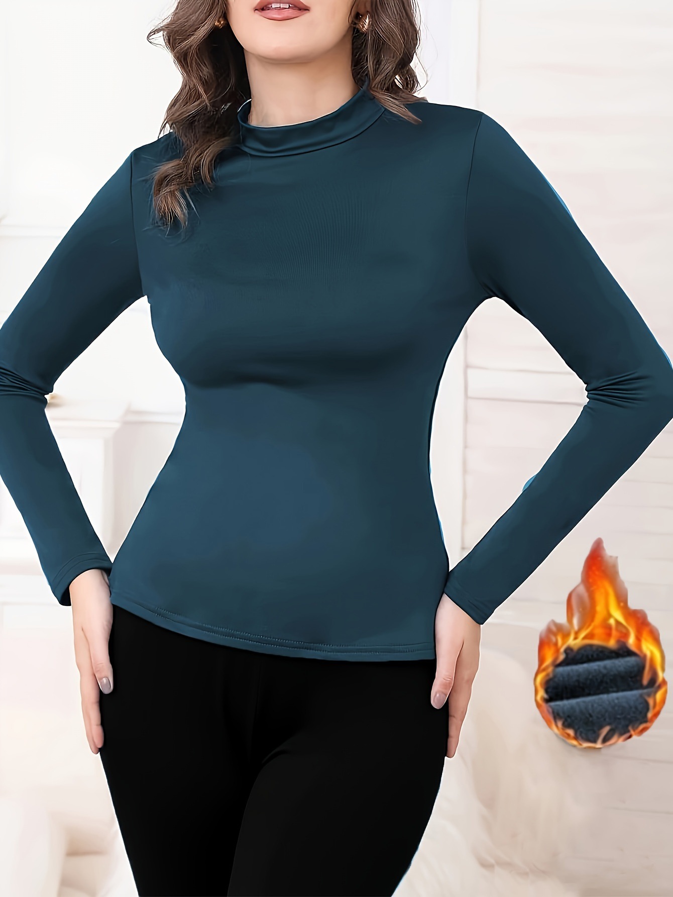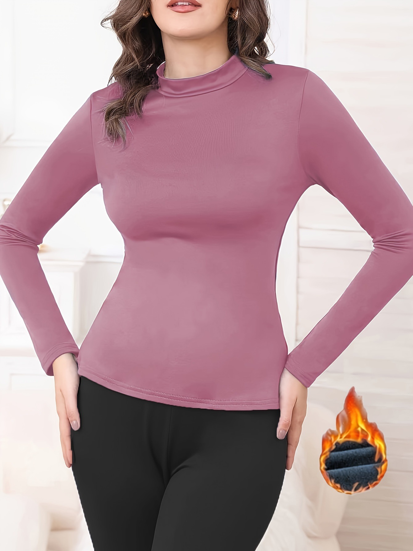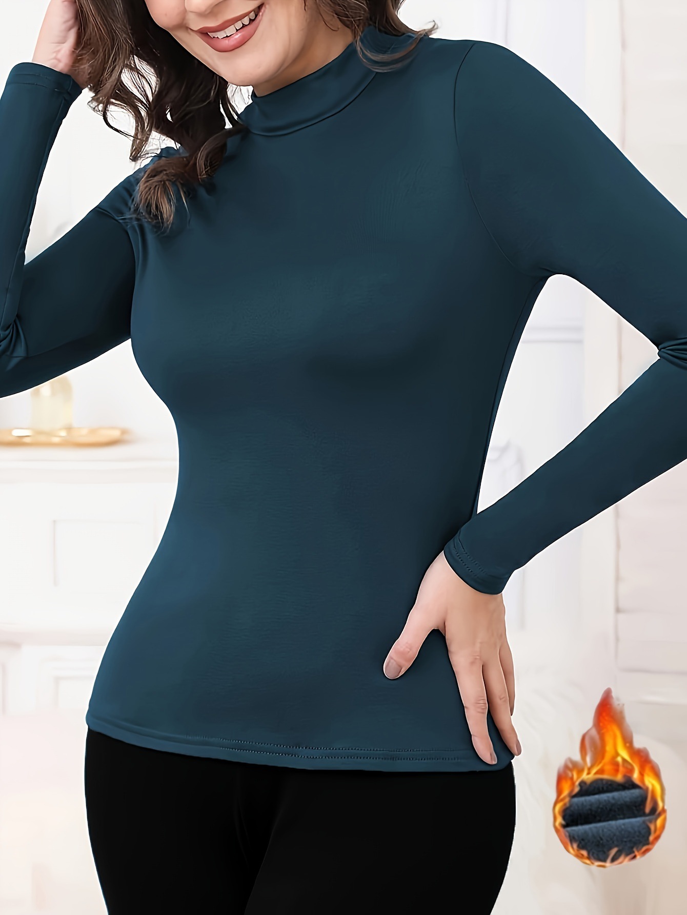 유럽과 미국의 크로스보더 여성용 라운드 넥 긴팔 벨벳 바닥 셔츠 가을 겨울 새로운 스타일의 심플한 솔리드 컬러 슬림핏 따뜻한 탑