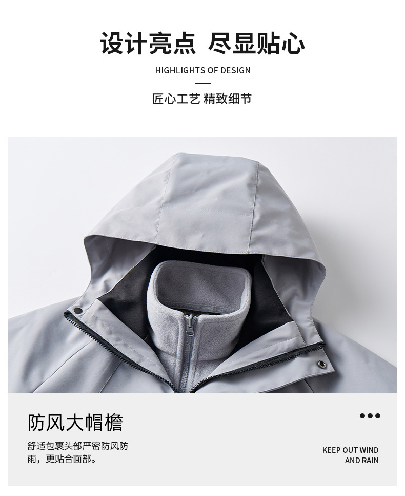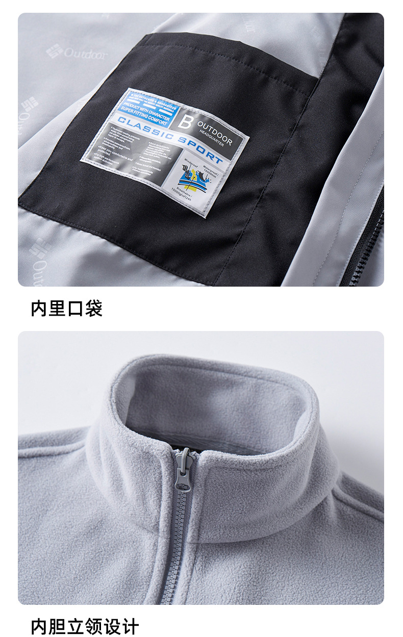 남성용 및 여성용 아웃도어 재킷, 아웃도어 봄, 가을 3-in-1 탈착식 작업복 등산복, 방풍 및 방수 재킷