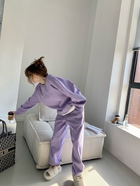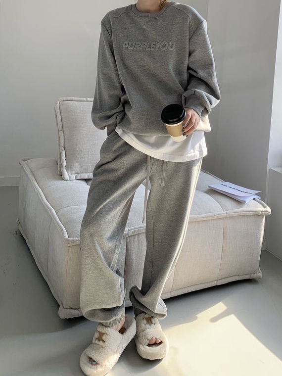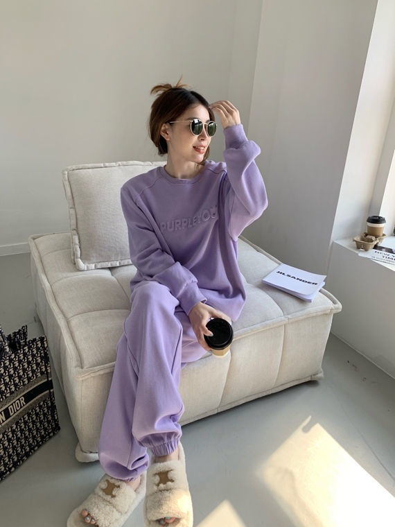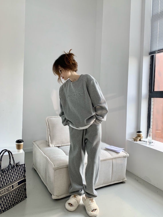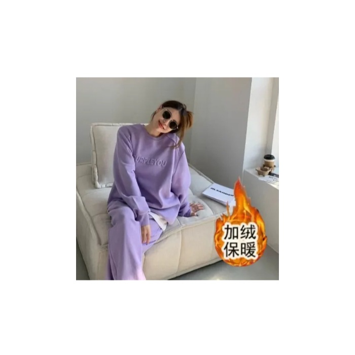가을 겨울 여성을 위한 플러스 사이즈 벨벳 두꺼운 스포츠 및 레저 슈트 새로운 패션 루즈한 스웨트 셔츠와 바지 투피스 세트스토어 가기