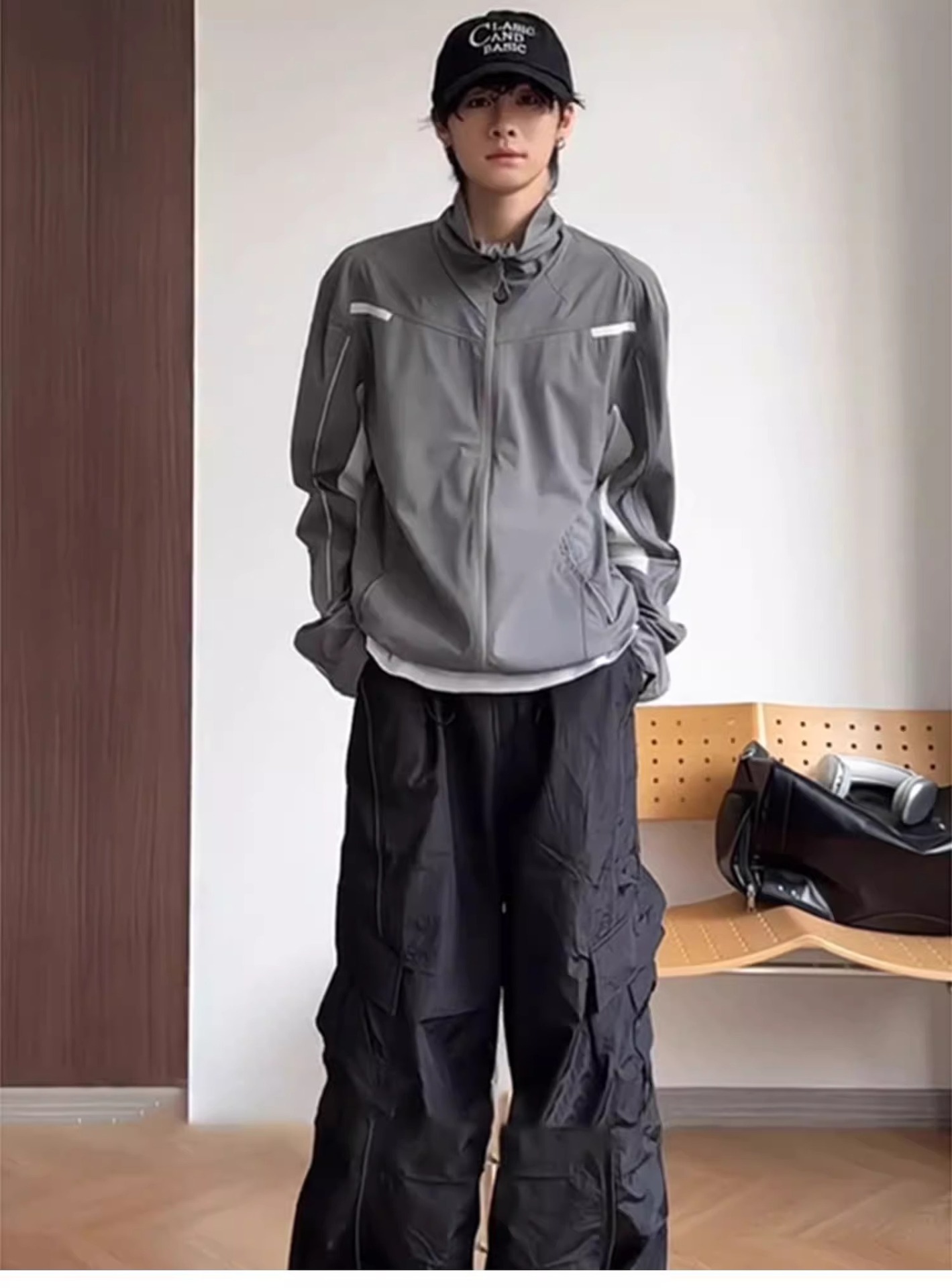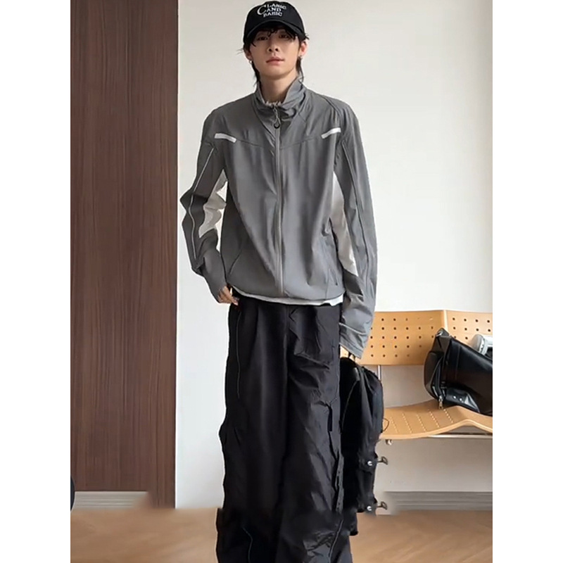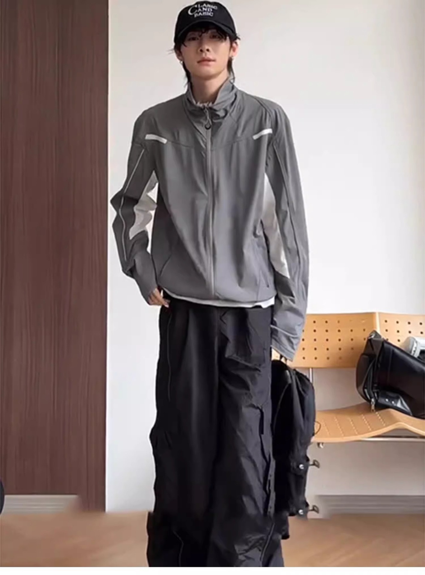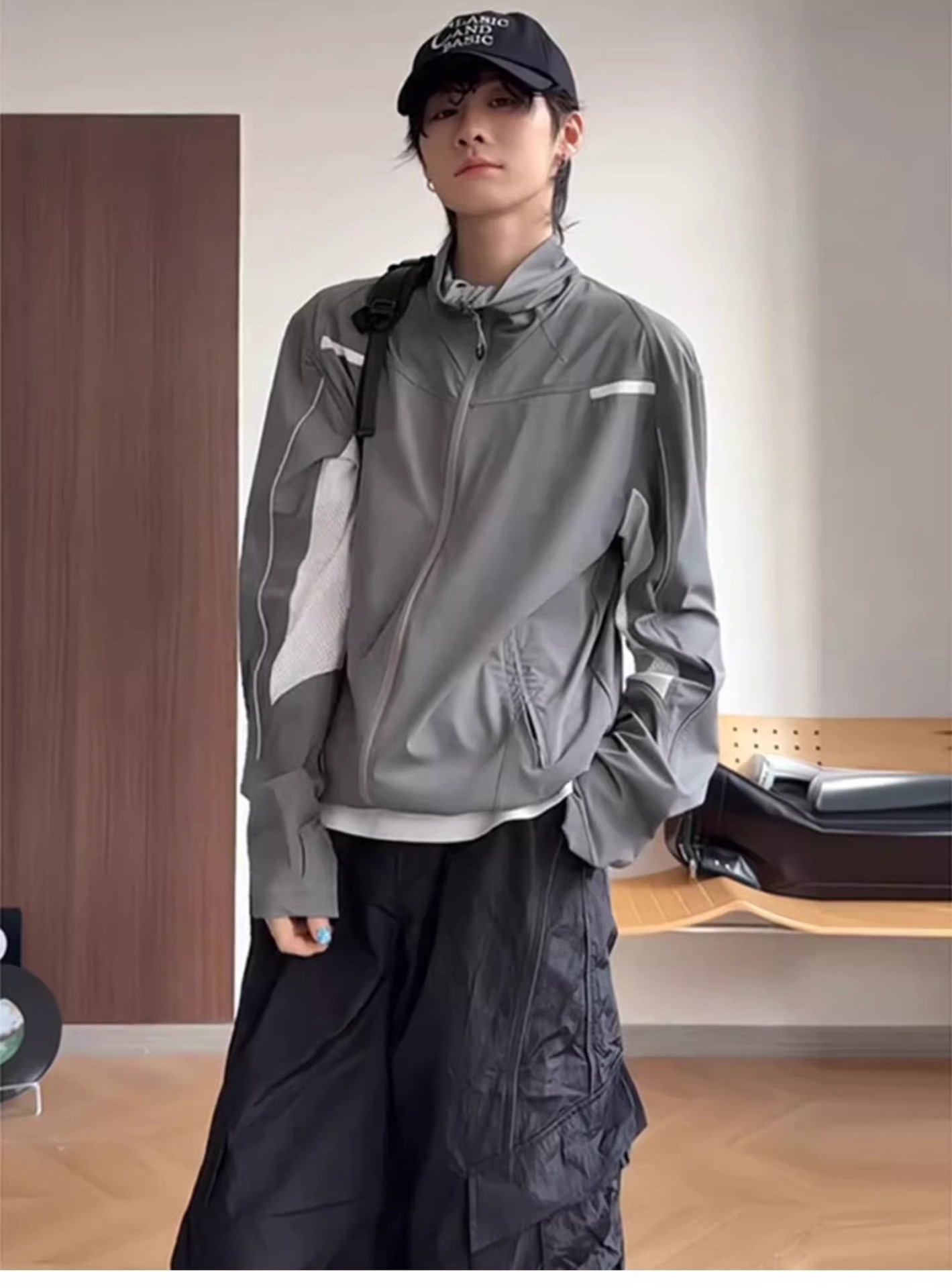 아이스 실크 경량 자외선 차단 재킷 남성 여름 속건성 스탠드 칼라 사이클링 재킷 아메리칸 기능성 재킷