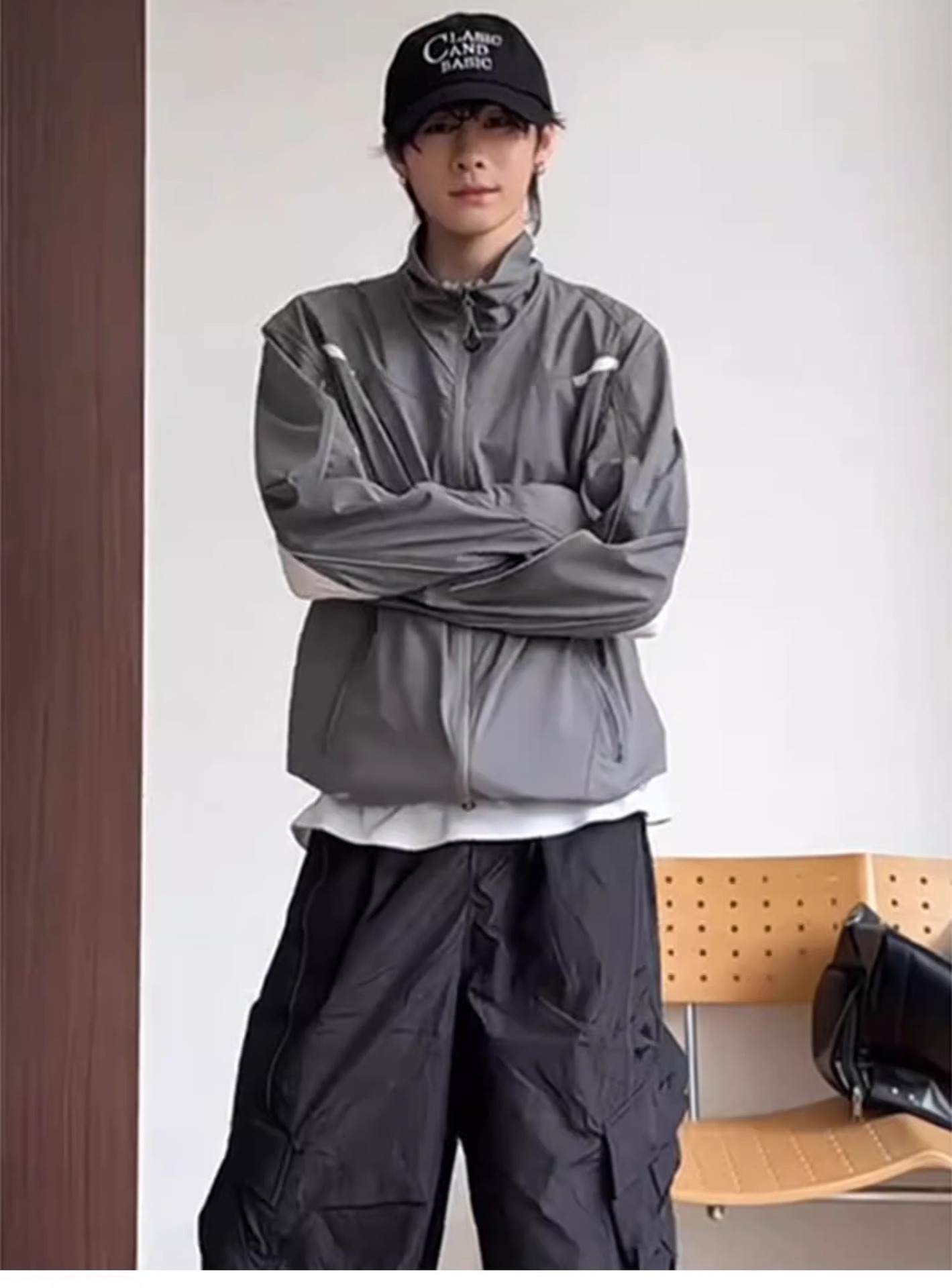 아이스 실크 경량 자외선 차단 재킷 남성 여름 속건성 스탠드 칼라 사이클링 재킷 아메리칸 기능성 재킷스토어 가기