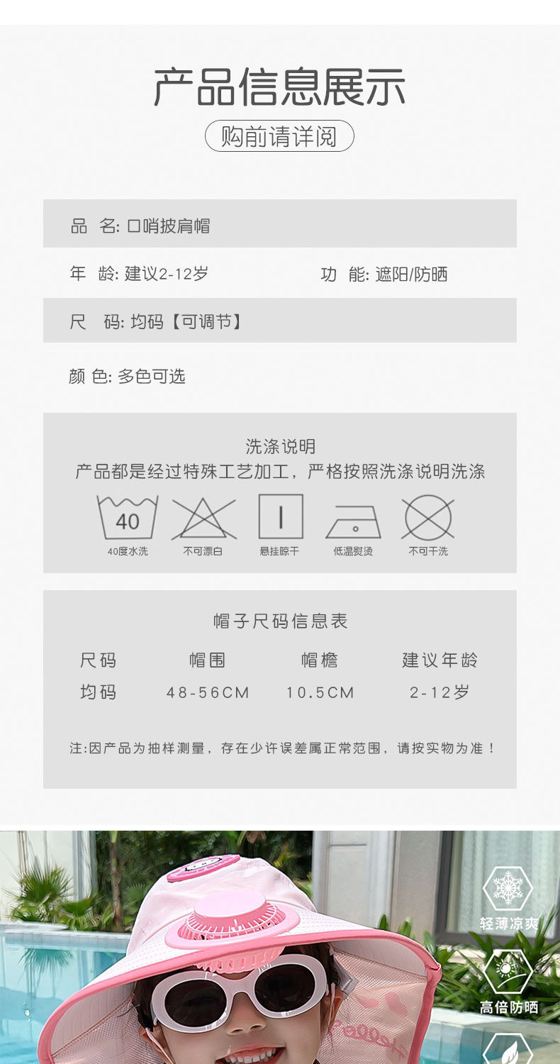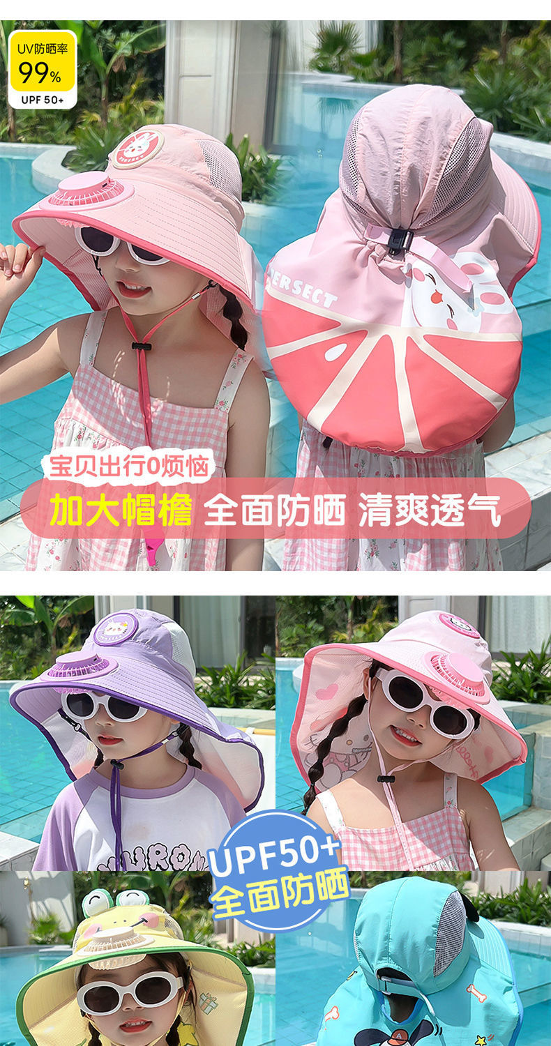 팬이 달린 어린이 산리오 자외선 차단 모자, 여름용 양산 숄 모자, 챙이 큰 남녀 공용 태양 모자, 외출용 챙이 큰 모자스토어 가기