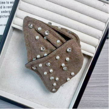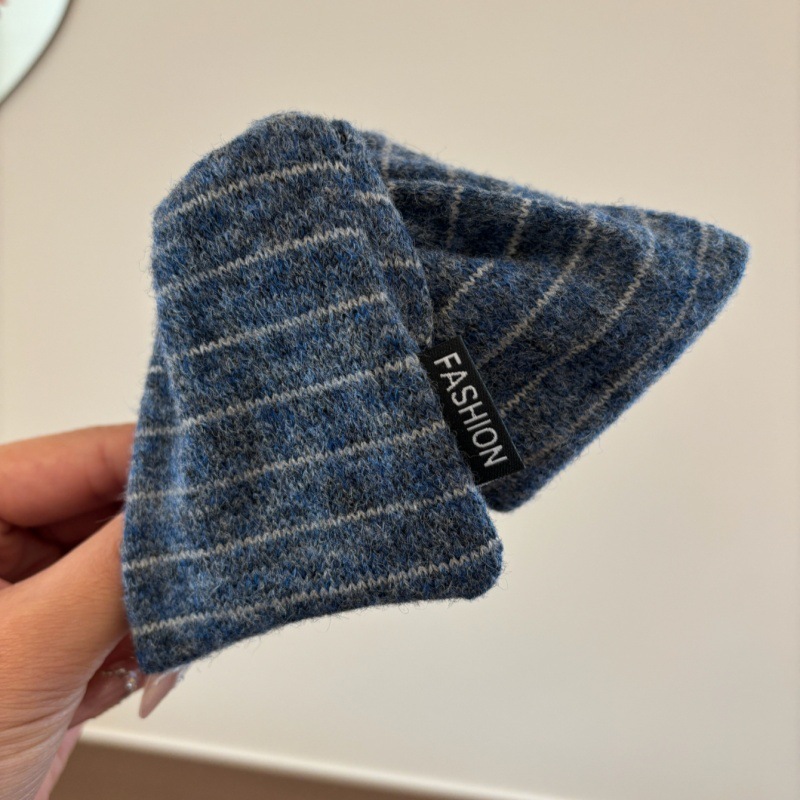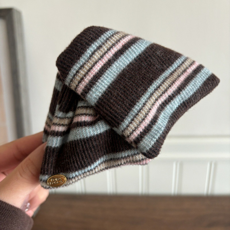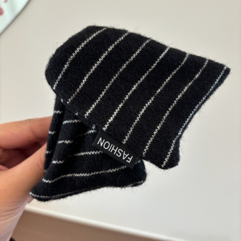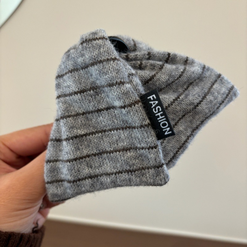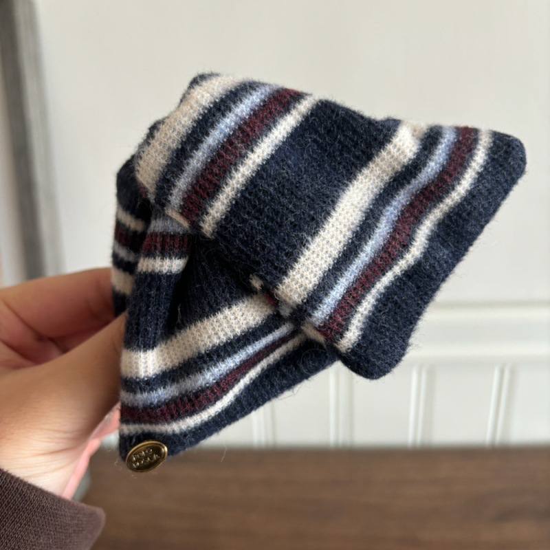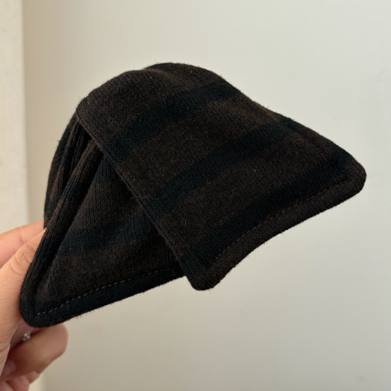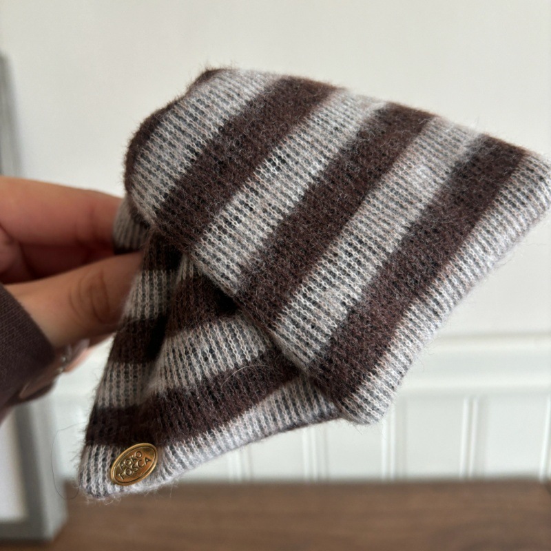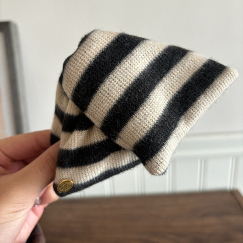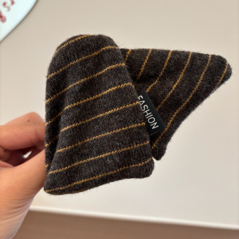 • 카멜 컬러 스트라이프 니트 삼각 집게핀