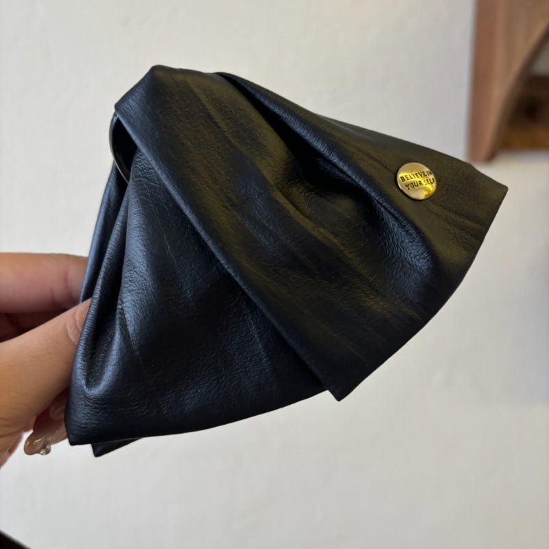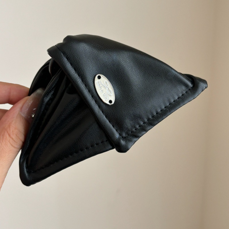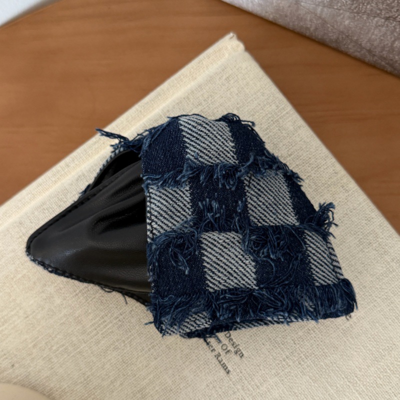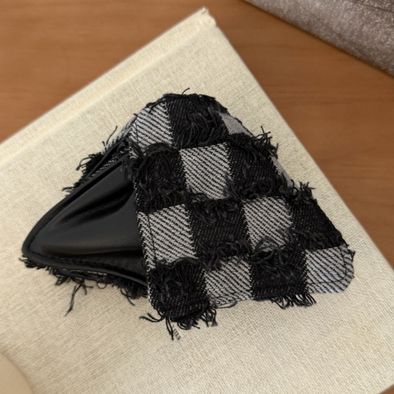 • 블랙 데님 체크 패턴 가죽 삼각형 그리퍼
