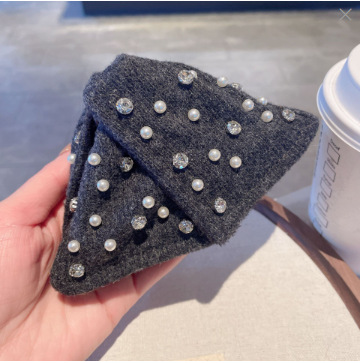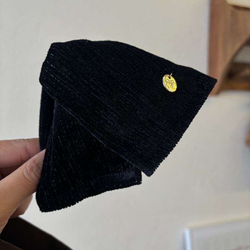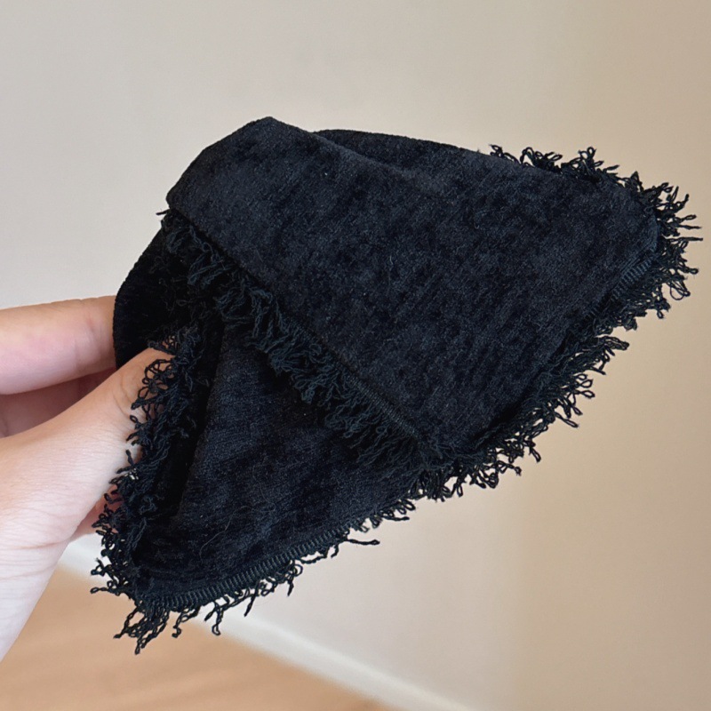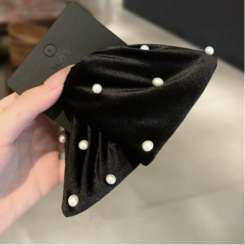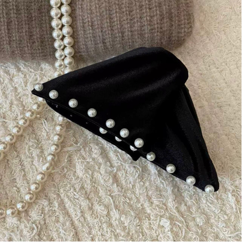 • 진주 장식 블랙 벨벳 삼각 집게핀