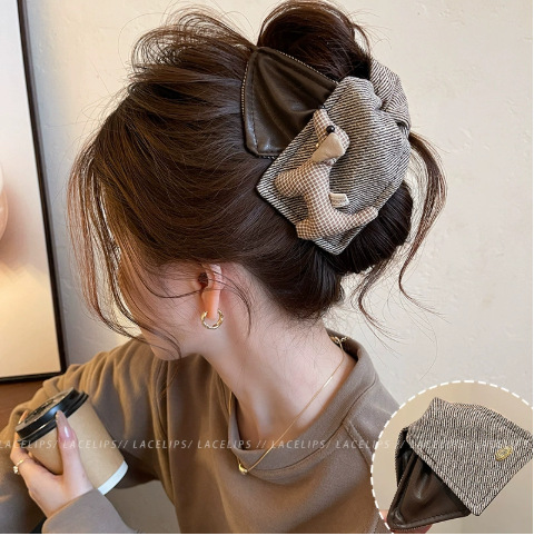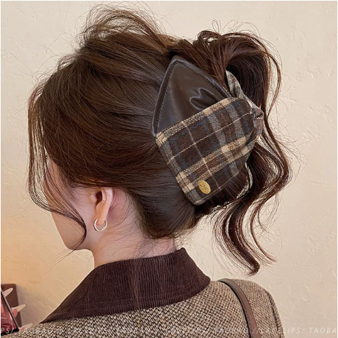 프렌치 새틴 쉘 삼각 클립 상어 클립 고급 인터넷 연예인 기질 다재다능한 뒷머리 헤어 클립 헤어 액세서리스토어 가기