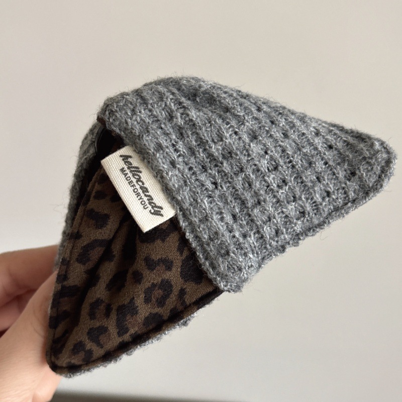 • 표범 무늬 니트 패치워크 - 그레이 삼각형 그립