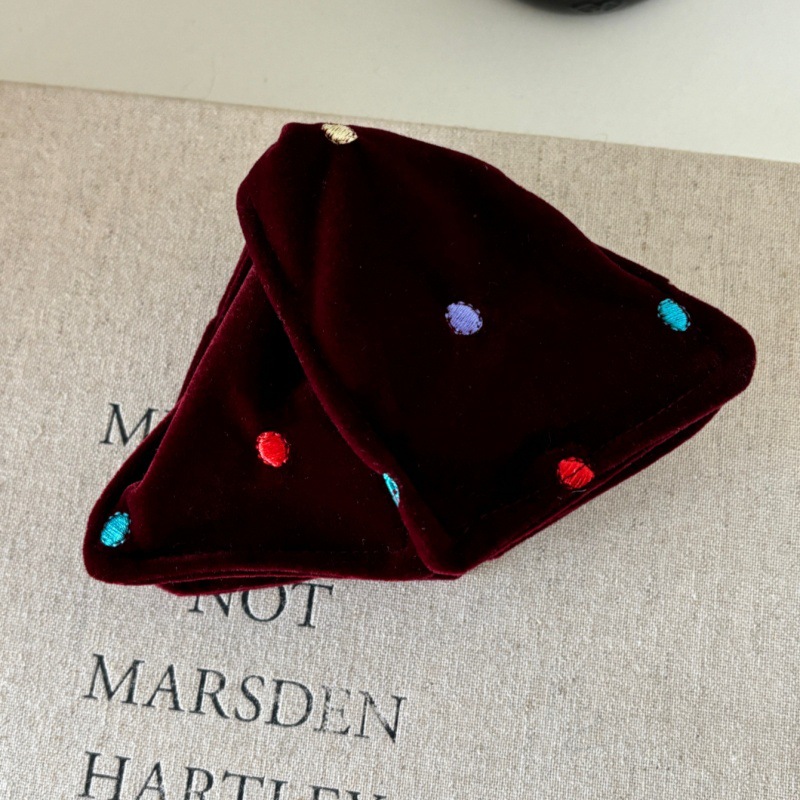 • 버건디 코튼 충전 도트 삼각형 그리퍼
