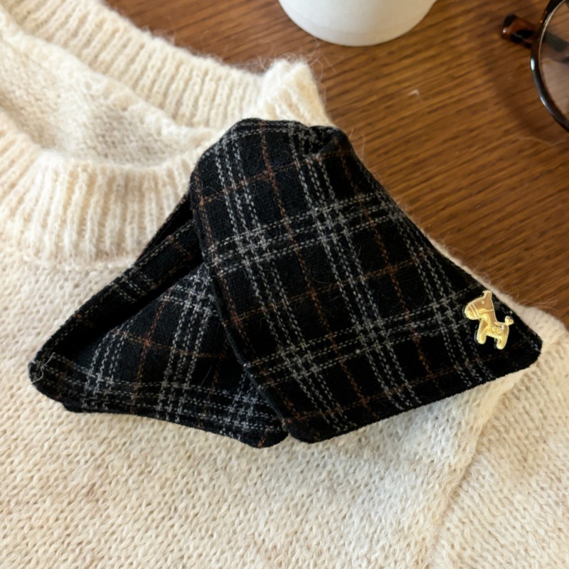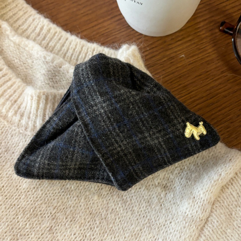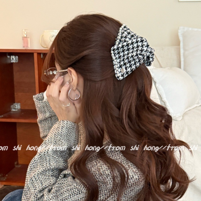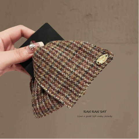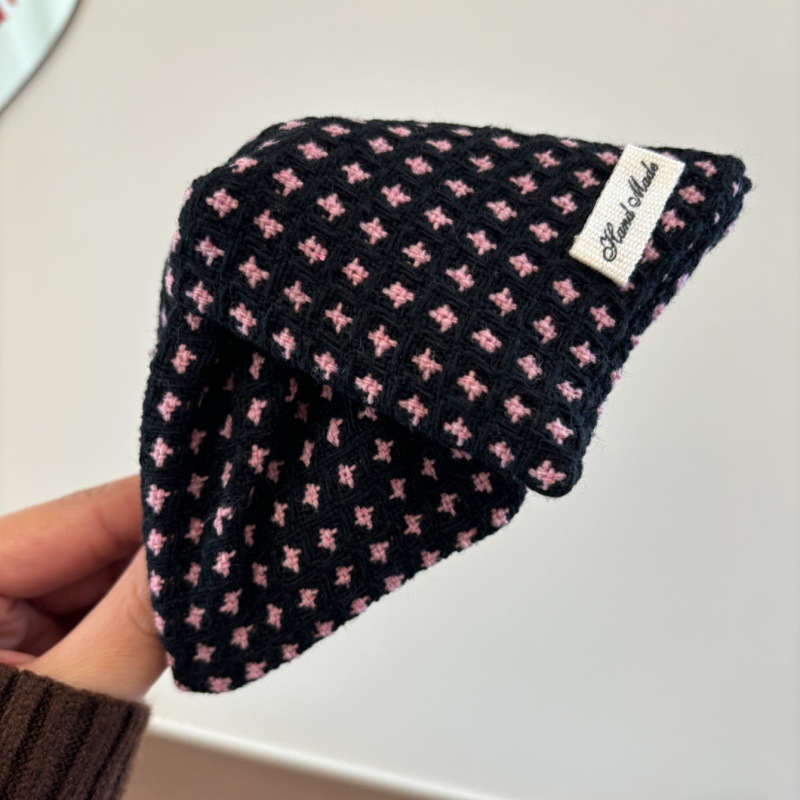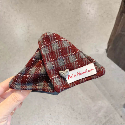 • 샤넬 스타일 체크 패턴 삼각 집게핀