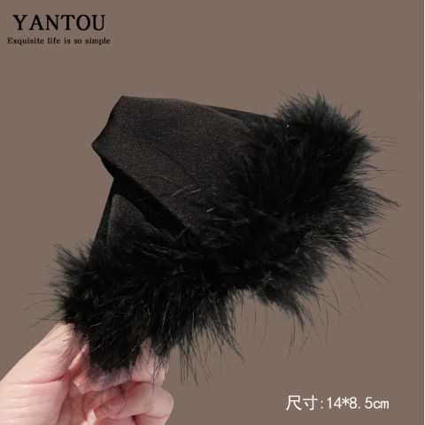 • 검정 물방울 무늬 밍크 퍼 삼각 집게핀