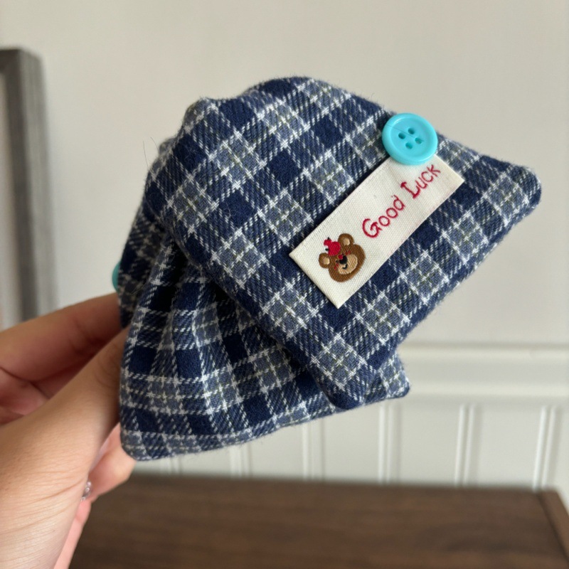 • 블루 체크 무늬 골드 라벨 삼각형 그리퍼