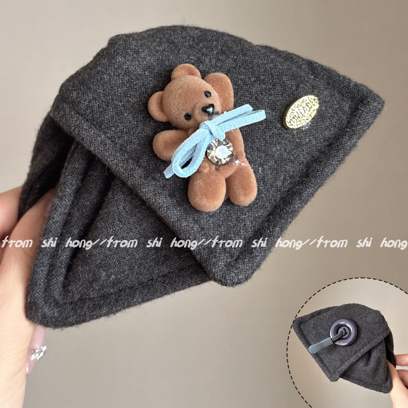 • 카멜 색상 곰돌이 AB면 삼각 집게핀