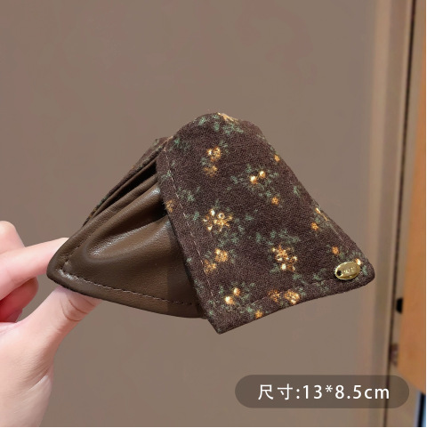 • 카멜 레오파드 패치워크 - 삼각 집게핀