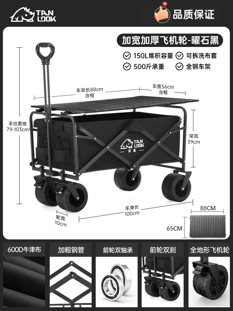 • 옵시디언 블랙 [대형 휠 8inch개 + 블랙 테이블] 확대 타이어 + 두꺼운 강철 파이프