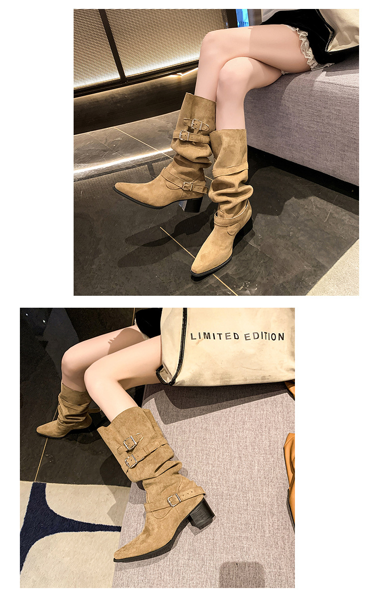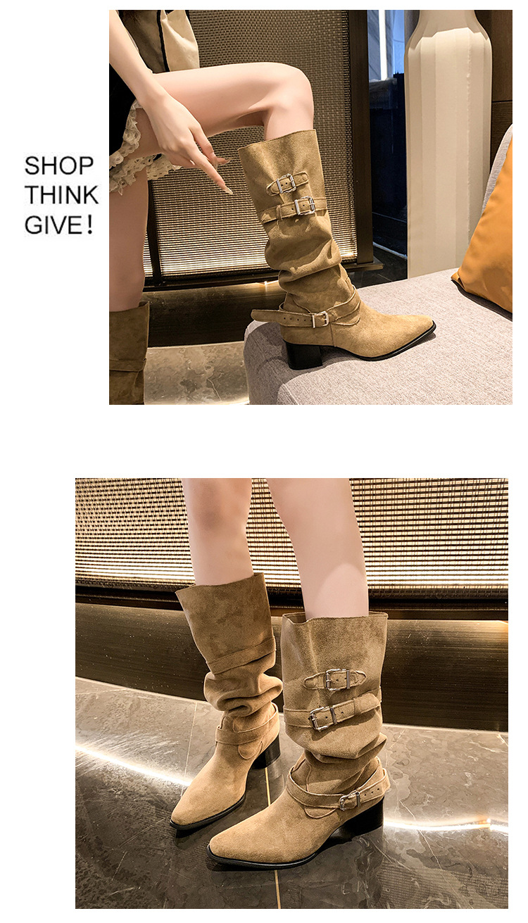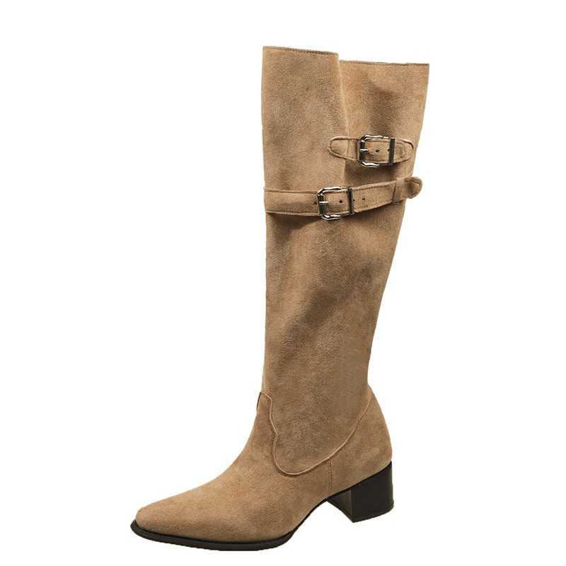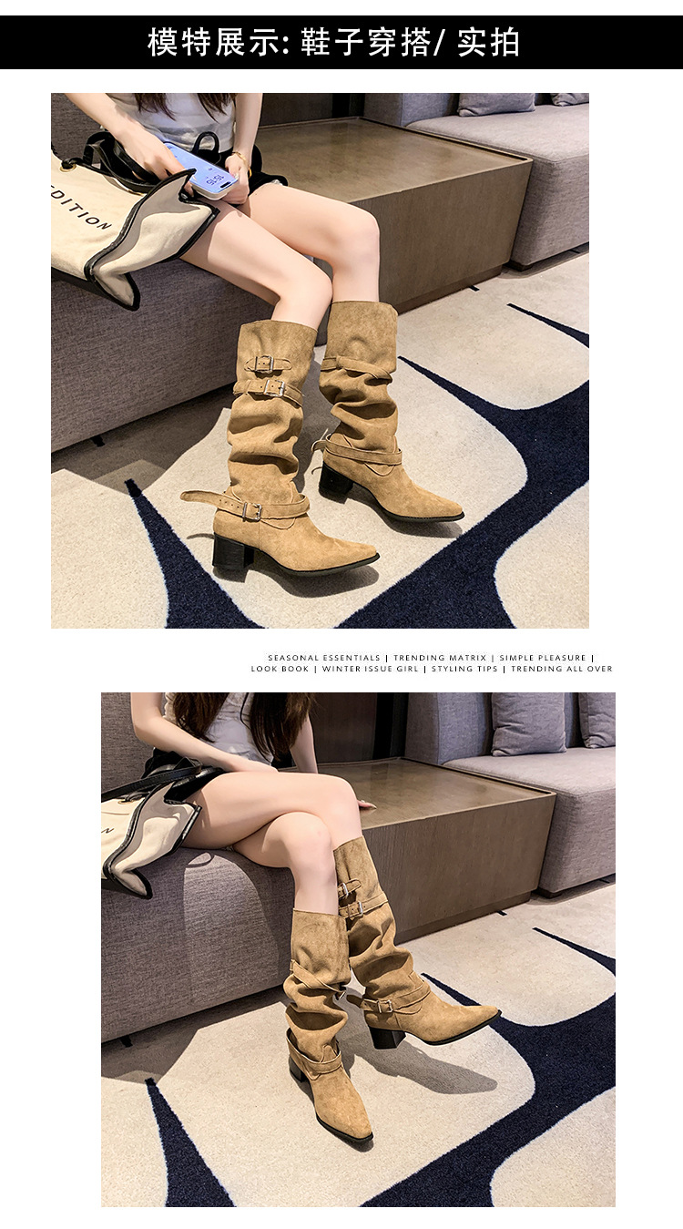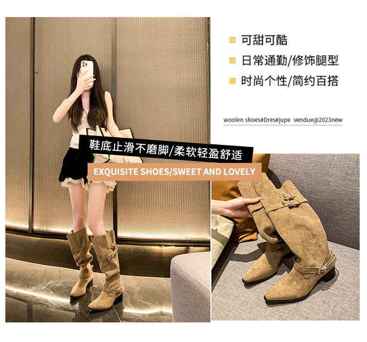 2025 가을 겨울 신상 유럽풍 뾰족코 나이트 부츠 인기 편안한 굽 높은 롱부츠 다용도 하이힐 부츠 여성용스토어 가기
