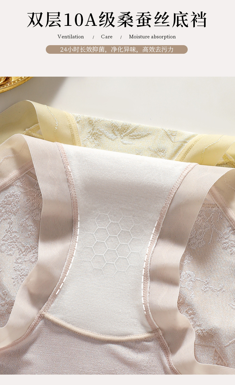 여성용 레이스 미드 웨이스트 아이스 실크 속옷, 힙 클립 없음, 대형 항균 뽕나무 실크 가랑이 팬티, 도매스토어 가기