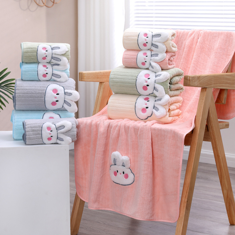 ✅ 산호 벨벳 목욕 수건 만화 큰 토끼 수건 가정용 흡수성 여성 여름 속건성 부드러운 목욕 수건
